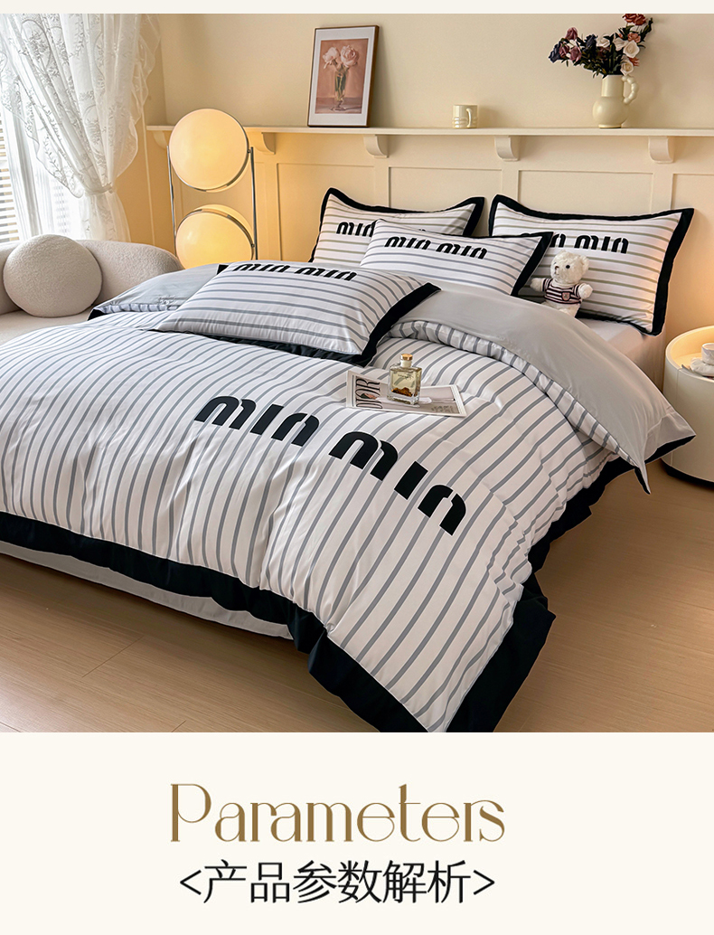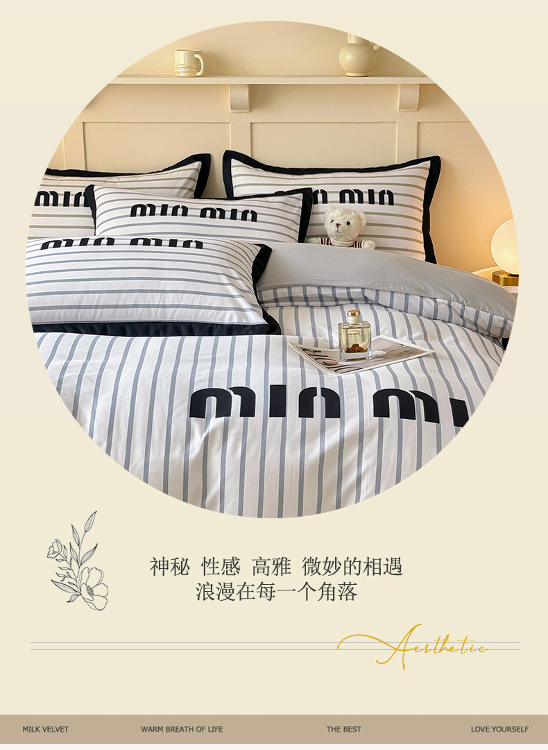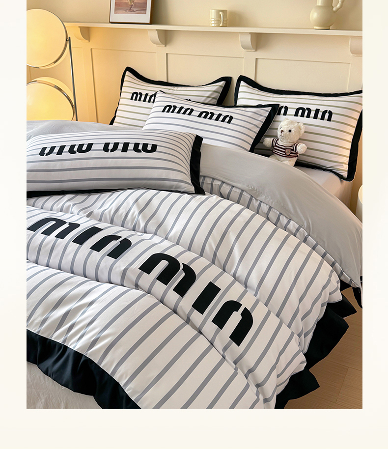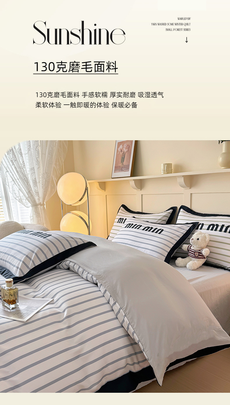 商品名称:色鬼 2024新款印花磨毛四件套仿大牌直播爆款网红四件套 条纹灰
