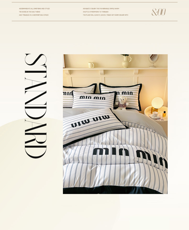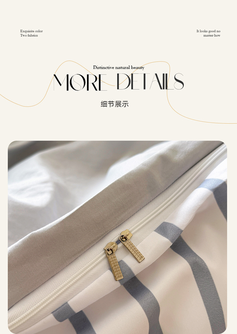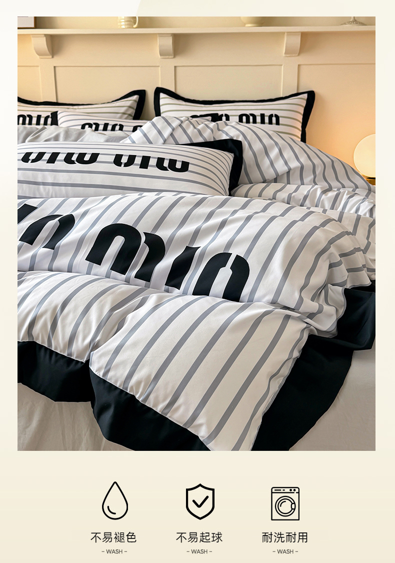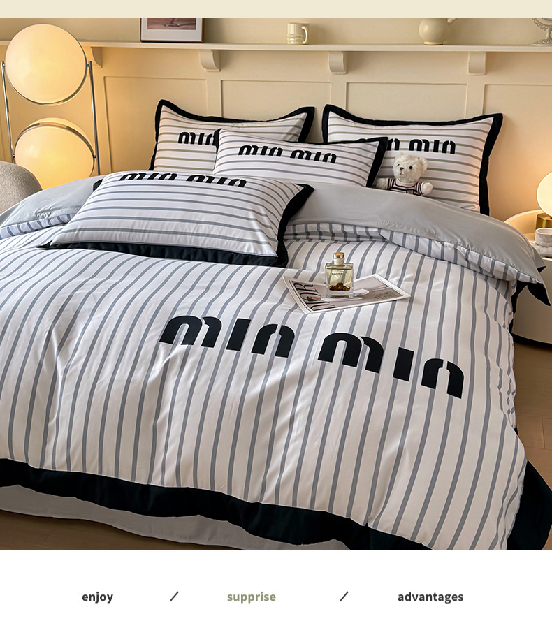 商品名称:色鬼 2024新款印花磨毛四件套仿大牌直播爆款网红四件套 条纹灰