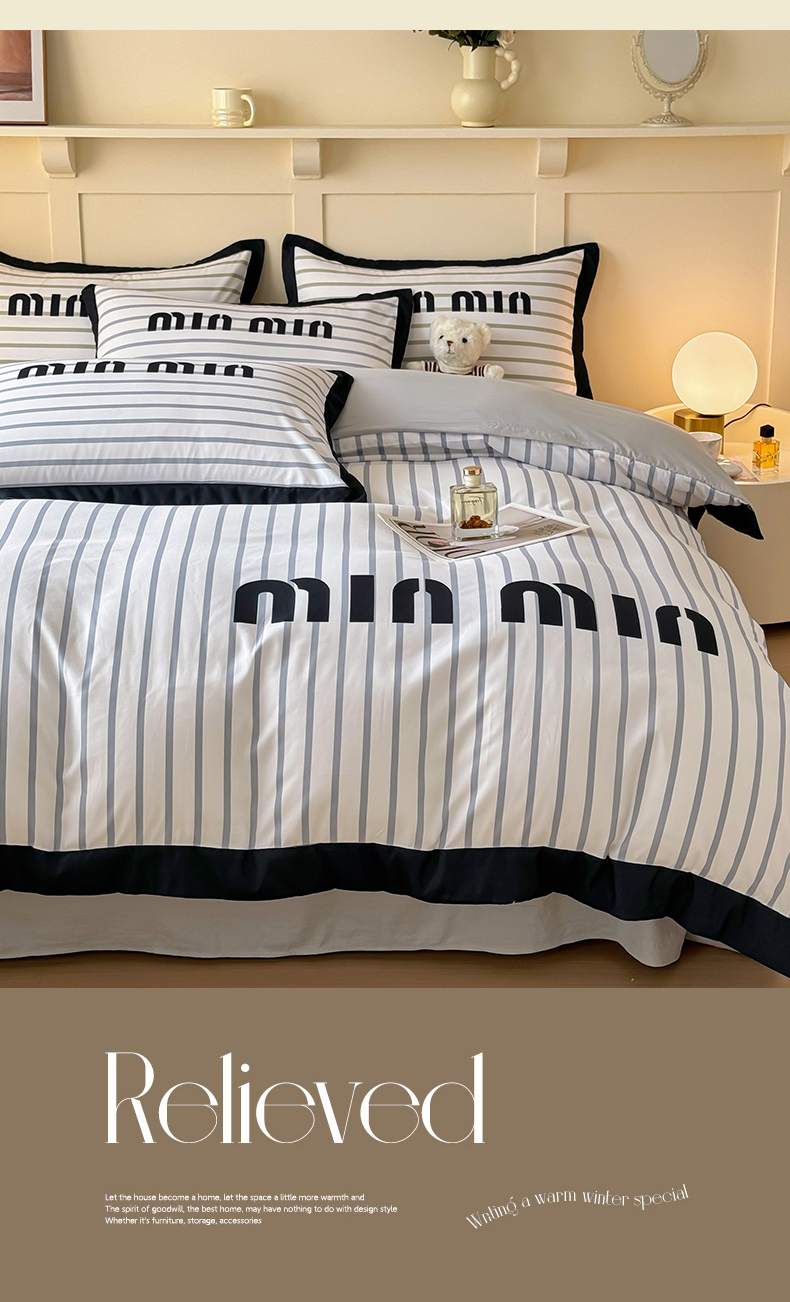 色鬼 2024新款印花磨毛四件套仿大牌直播爆款网红四件套 条纹灰