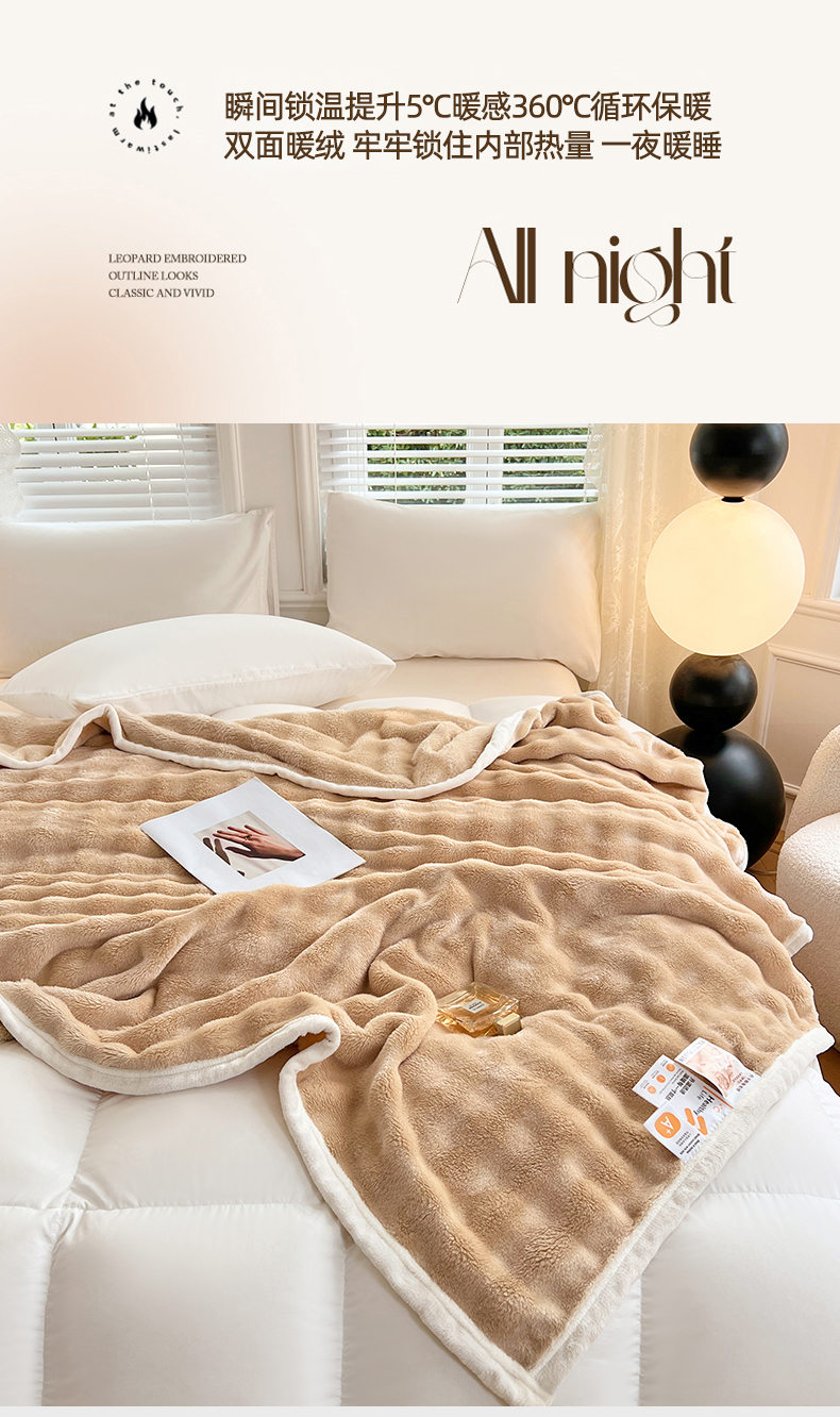 商品名称:贝拉梦家纺 2024新款加厚保暖托卡斯兔毛绒毛毯多功能毯子保暖盖毯 可可奶棕