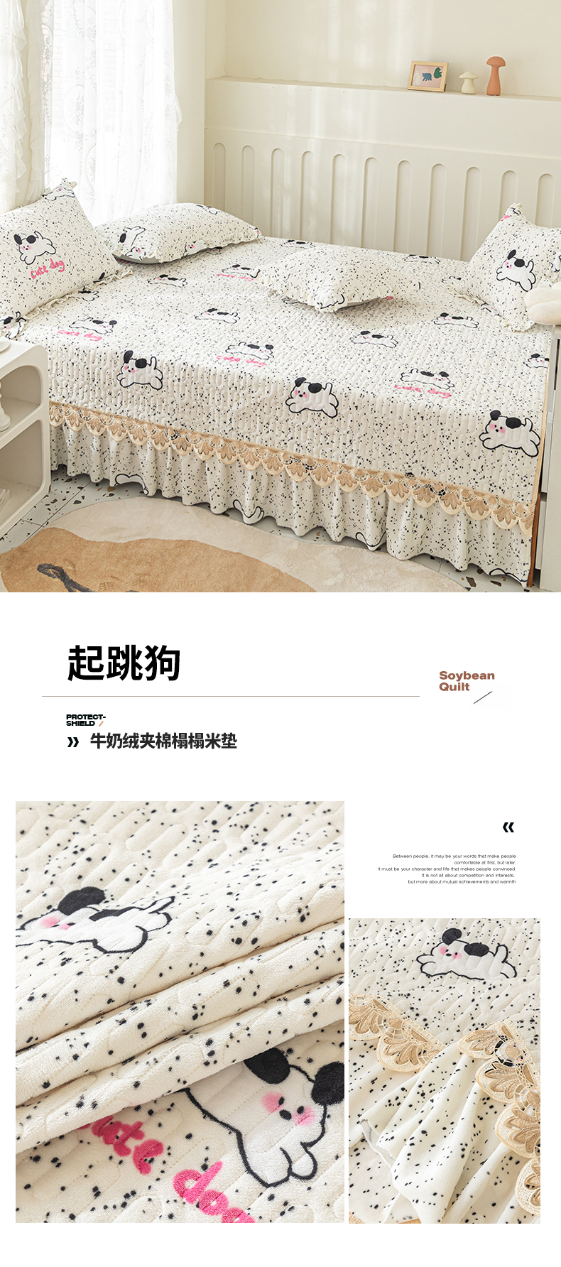 • 91家纺网 家纺一手货源 找家纺 美优兰 2025秋冬新款牛奶绒榻榻米垫床盖(可定制) 起跳狗