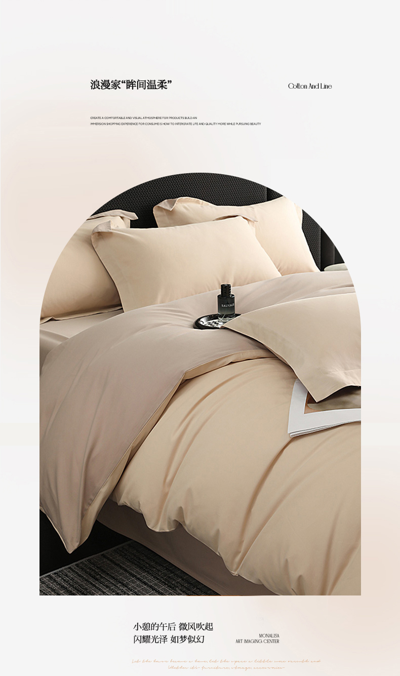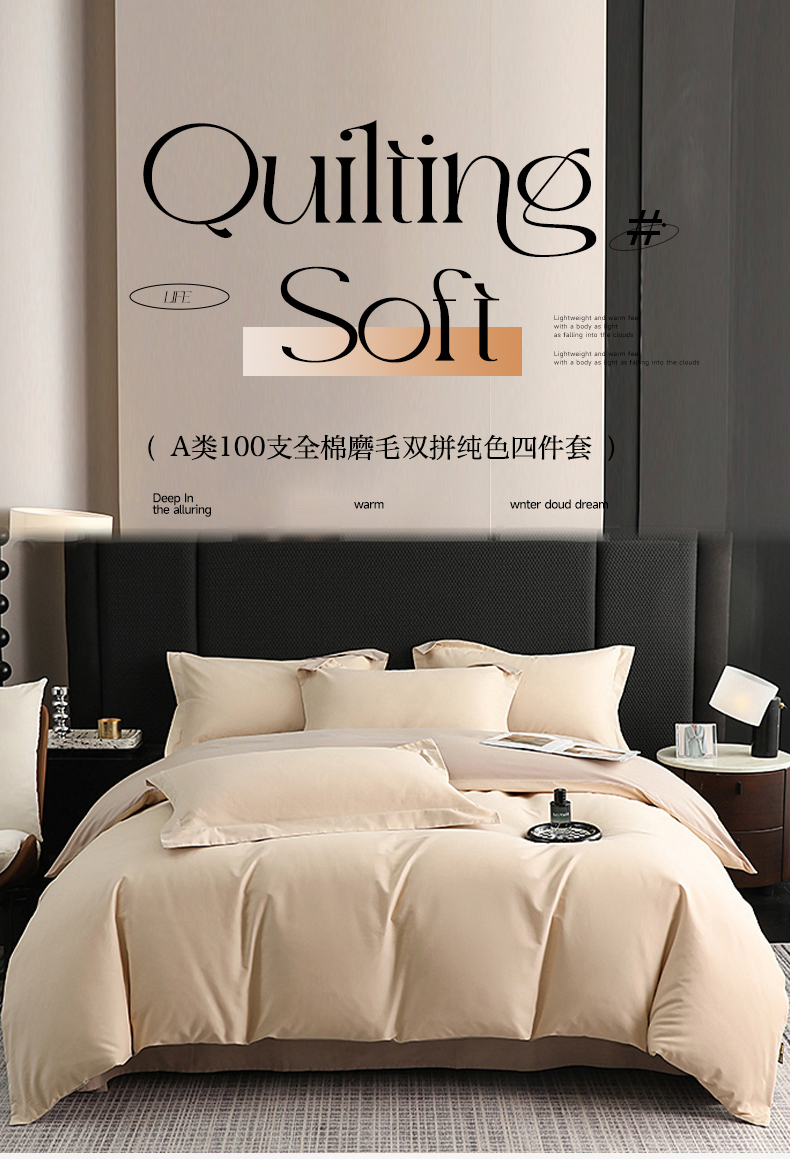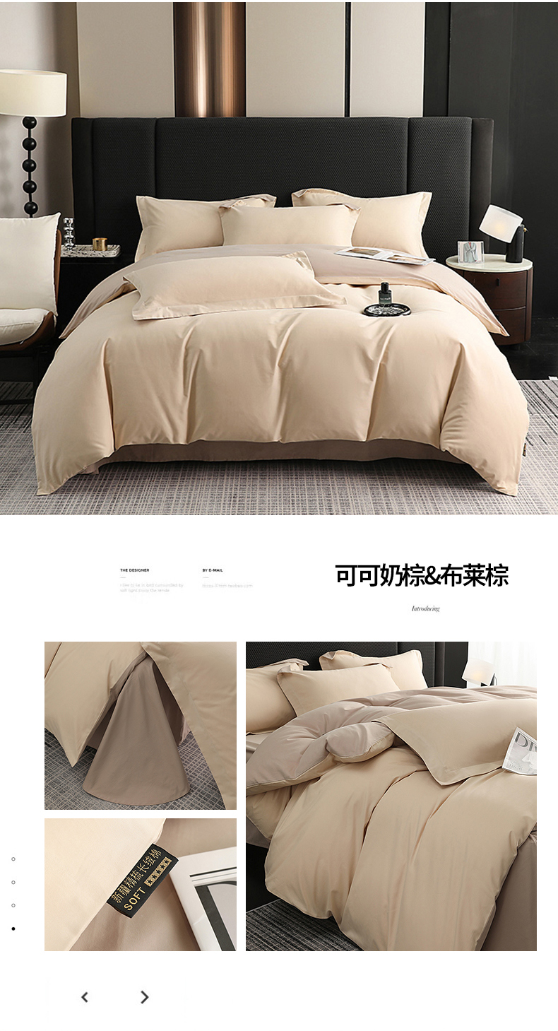 当前位置: 91家纺网 > 商品网购 > 床品套件 > 四件套 > 全棉活性四件套 > 莱阁亿 2025秋冬新款高支高密全棉纯棉磨毛双拼纯色四件套 可可奶棕&布莱棕