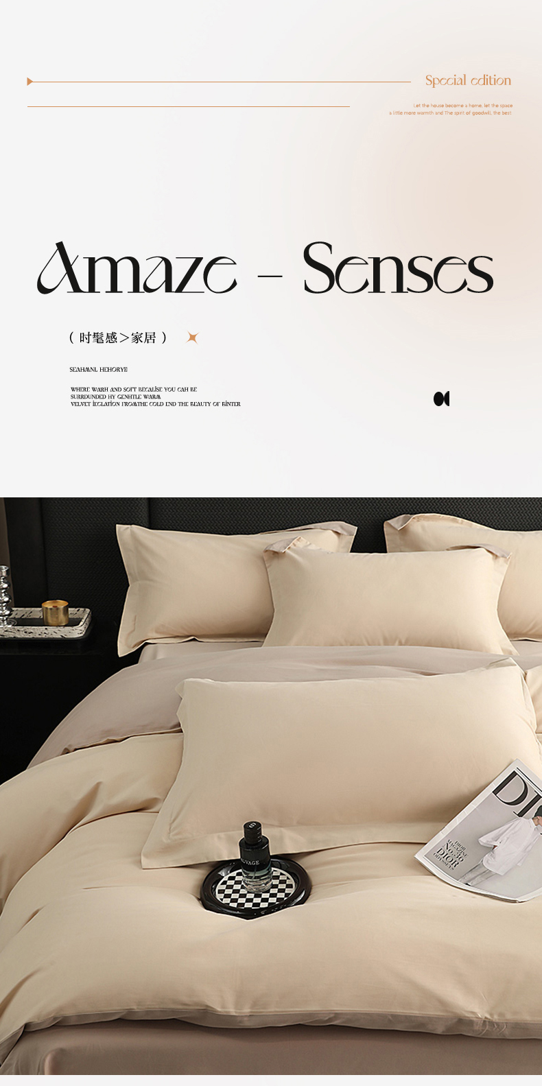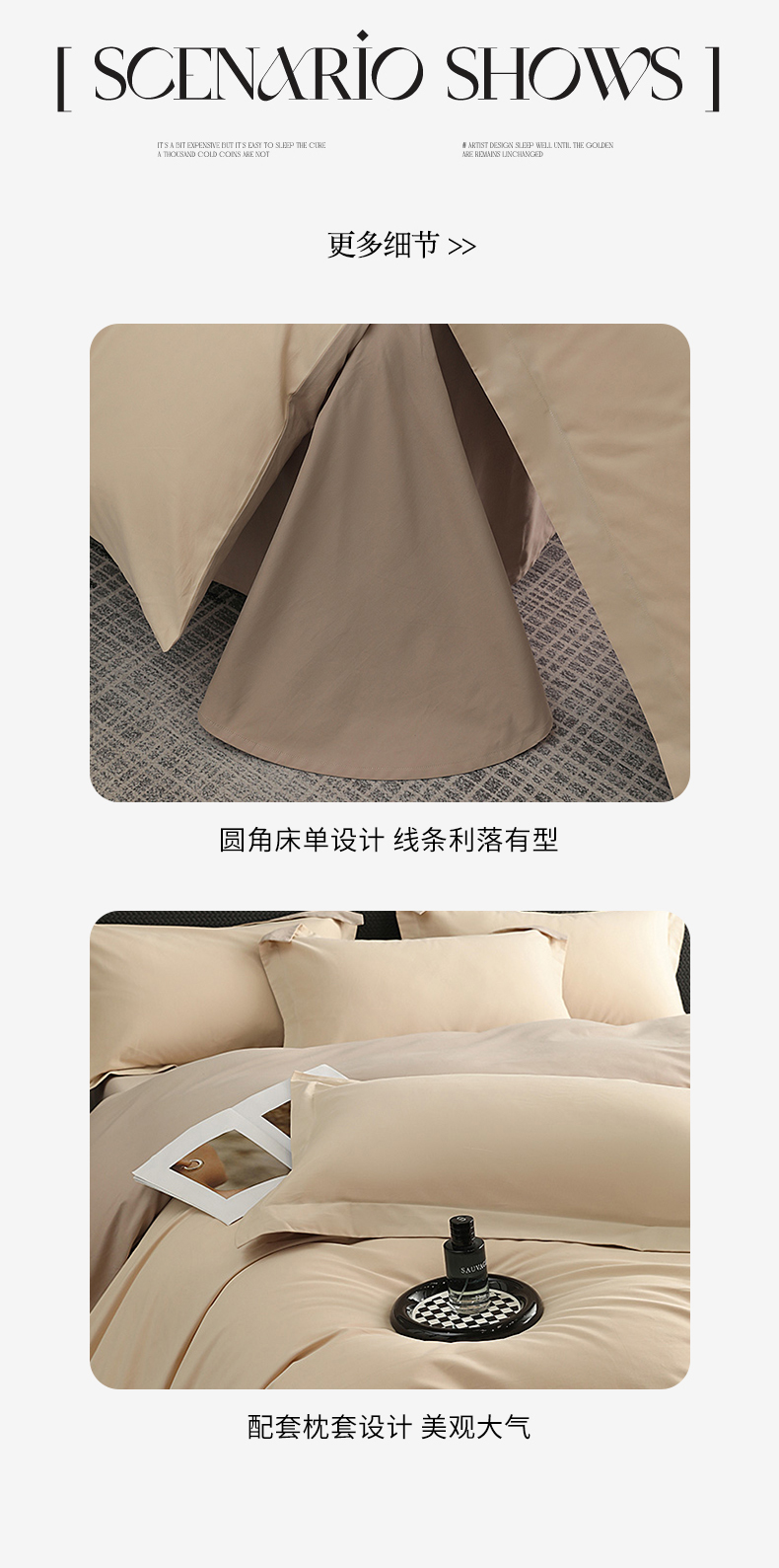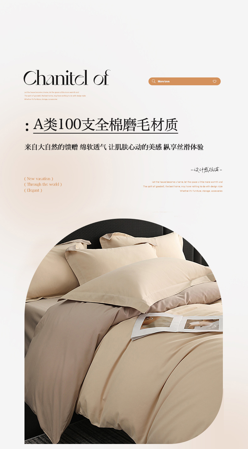 当前位置: 91家纺网 > 商品网购 > 床品套件 > 四件套 > 全棉活性四件套 > 莱阁亿 2025秋冬新款高支高密全棉纯棉磨毛双拼纯色四件套 可可奶棕&布莱棕