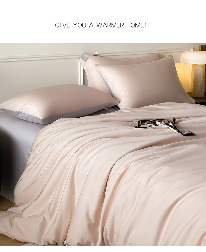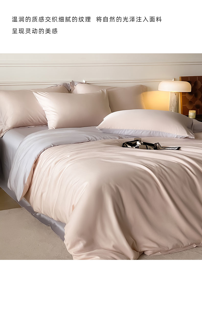 Mr.pig猪先生水洗棉 2024新款天丝棉纯色四件套 桃喜粉+朦胧灰