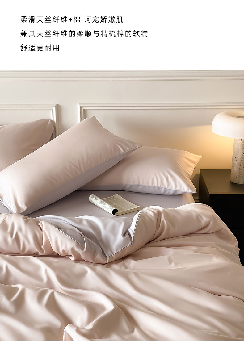 商品名称:Mr.pig猪先生水洗棉 2024新款天丝棉纯色四件套 桃喜粉+朦胧灰