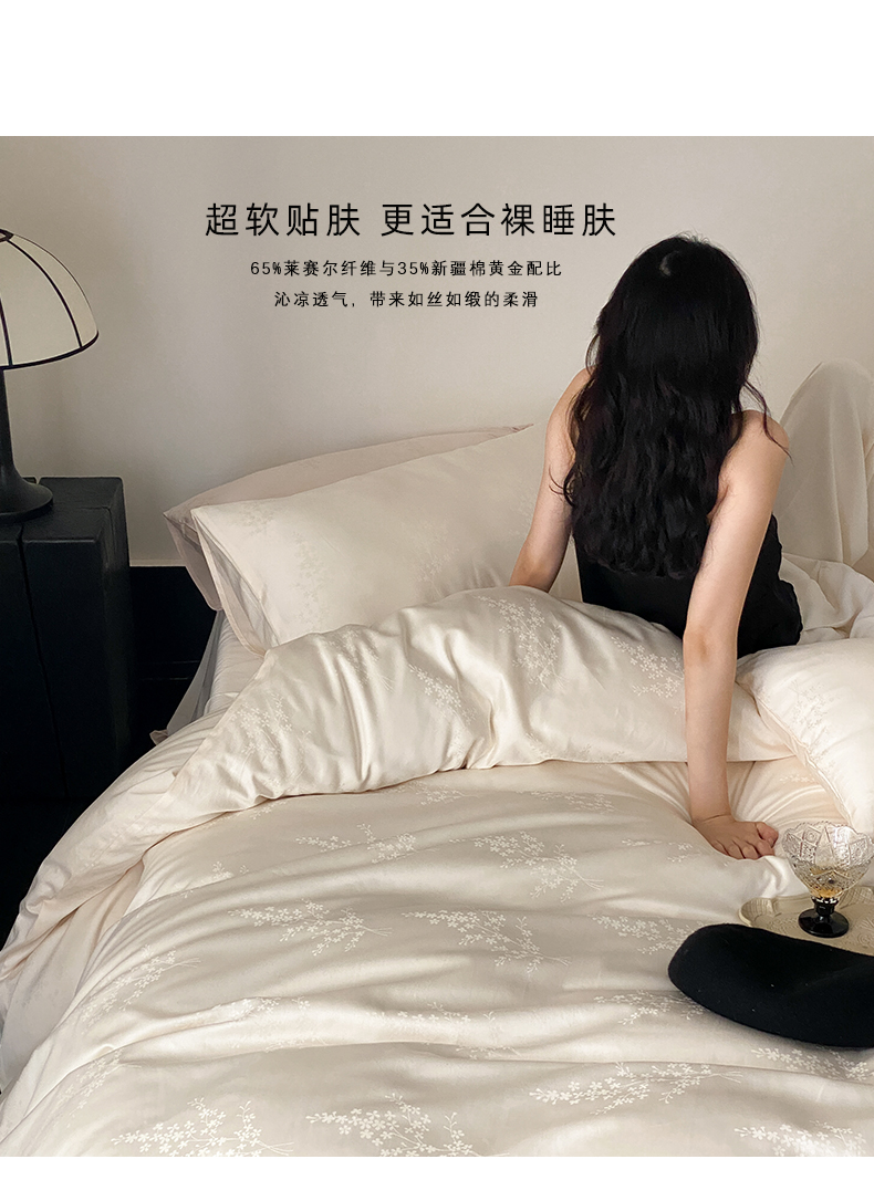 当前位置: 91家纺网 > 商品网购 > 床品套件 > 四件套 > 莱赛尔四件套 > Mr.pig猪先生水洗棉 2024新款天丝棉提花四件套 丁香奶白