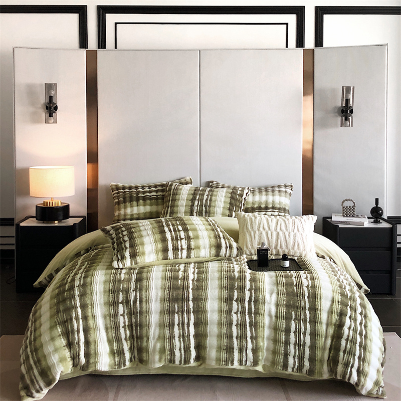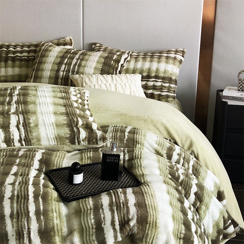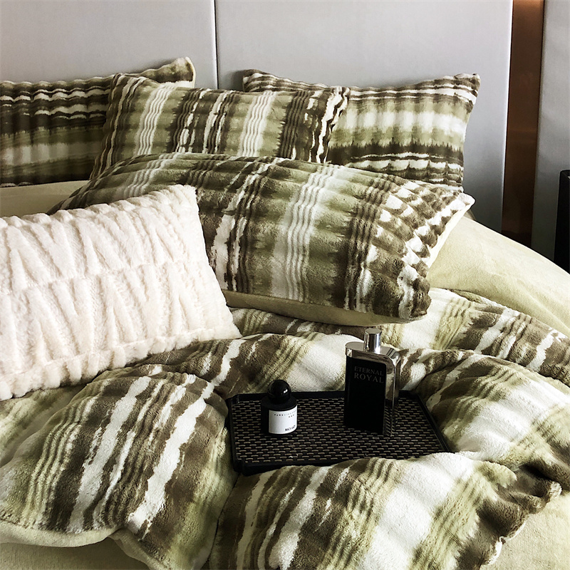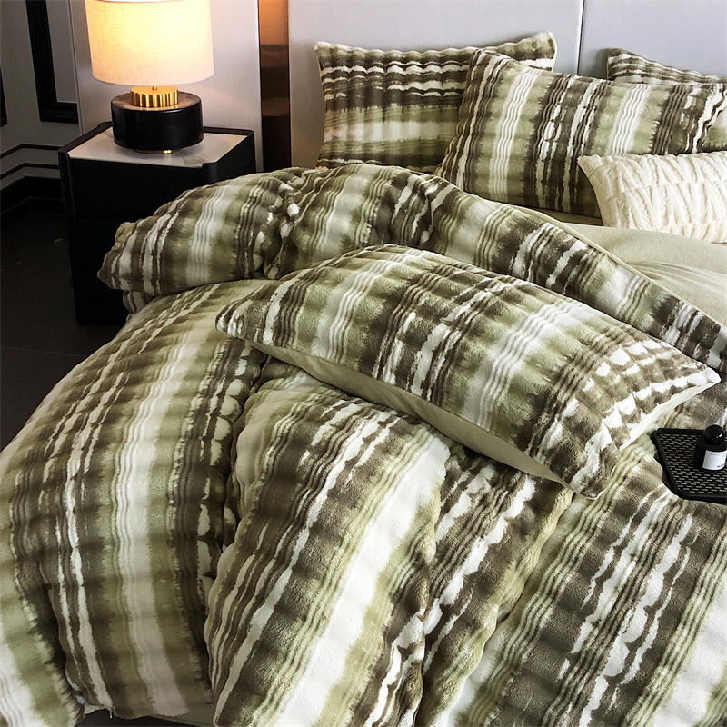 佳汐蓝家纺 2024秋冬新品—牛奶绒印花格调系列 格调 绿(暗合)