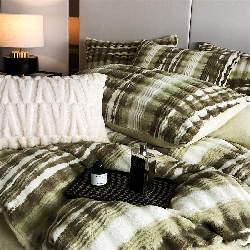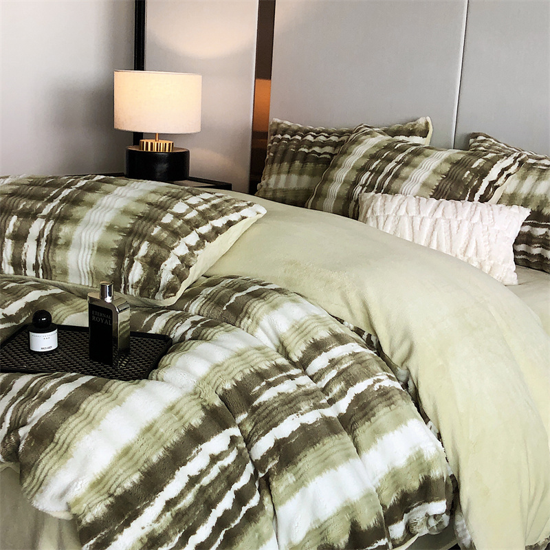 商品名称:佳汐蓝家纺 2024秋冬新品—牛奶绒印花格调系列 格调 绿(暗合)