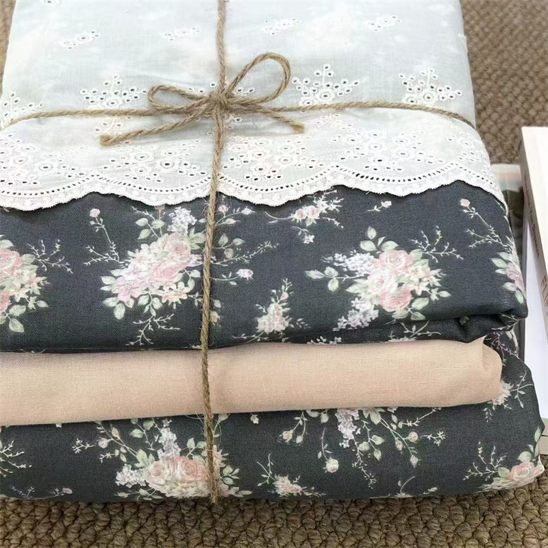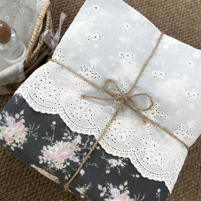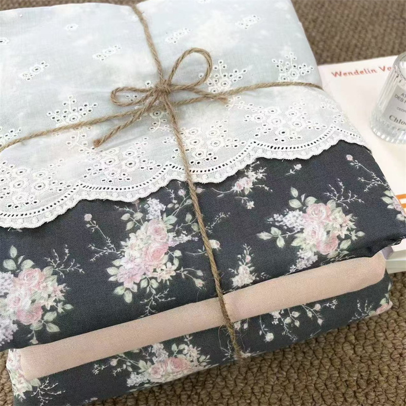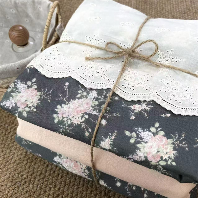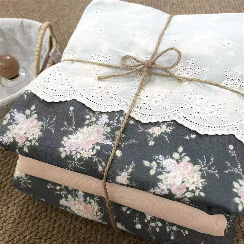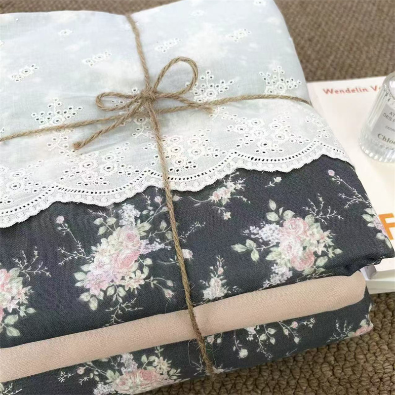 2024新款全棉印花双层纱四件套--蕾丝花边款繁花