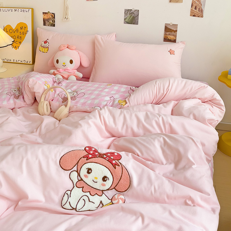 一霖家纺 2024新款高克重云朵棉毛巾绣印+绣小清新系列四件套 花田小兔