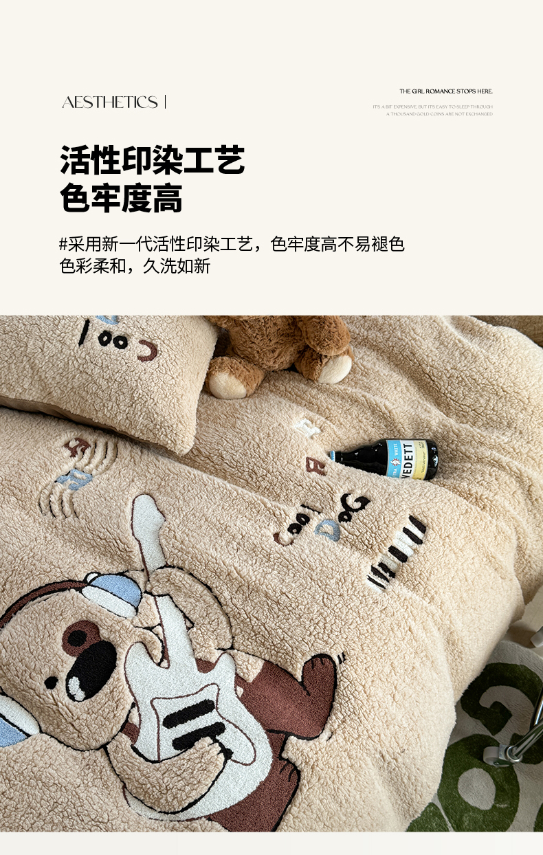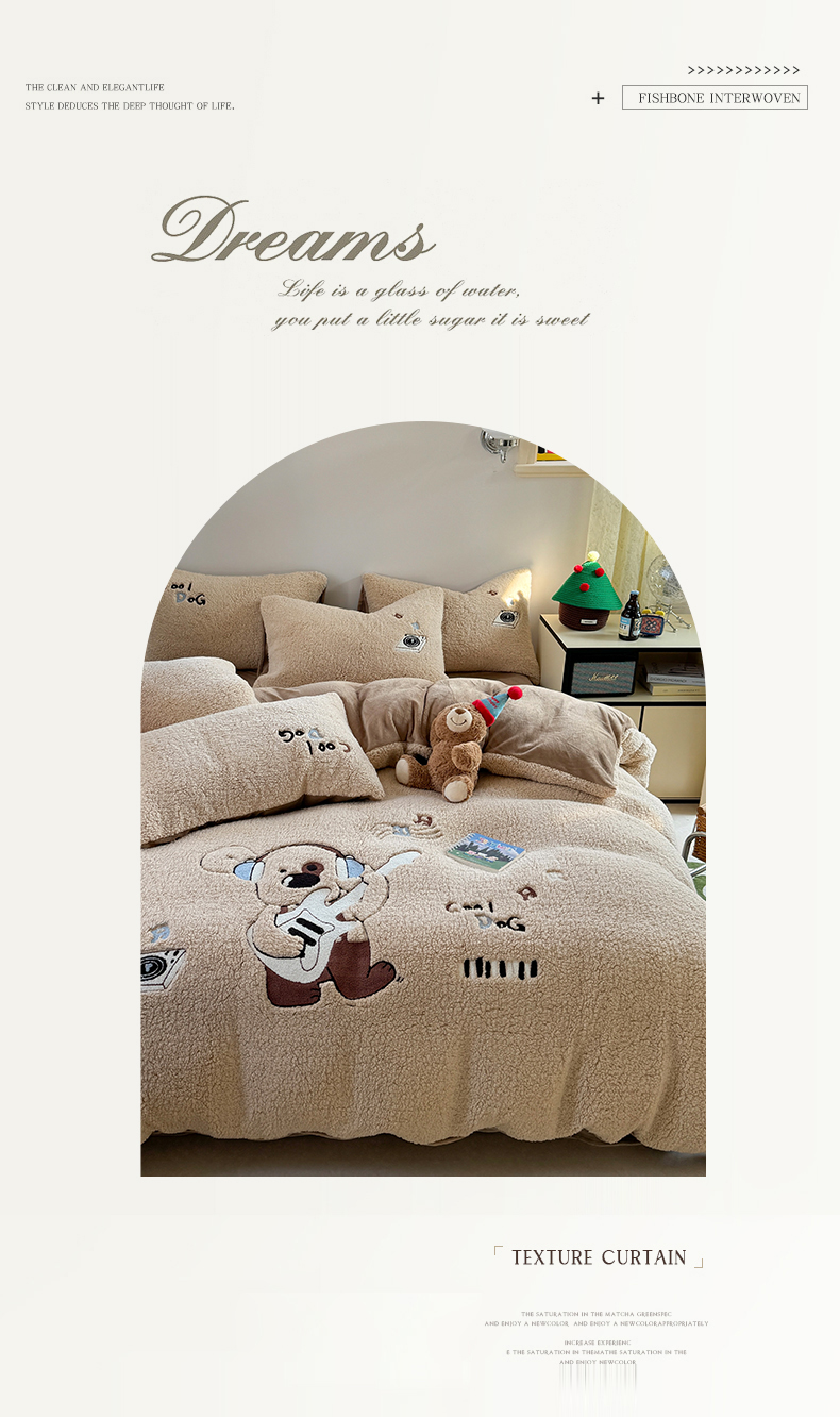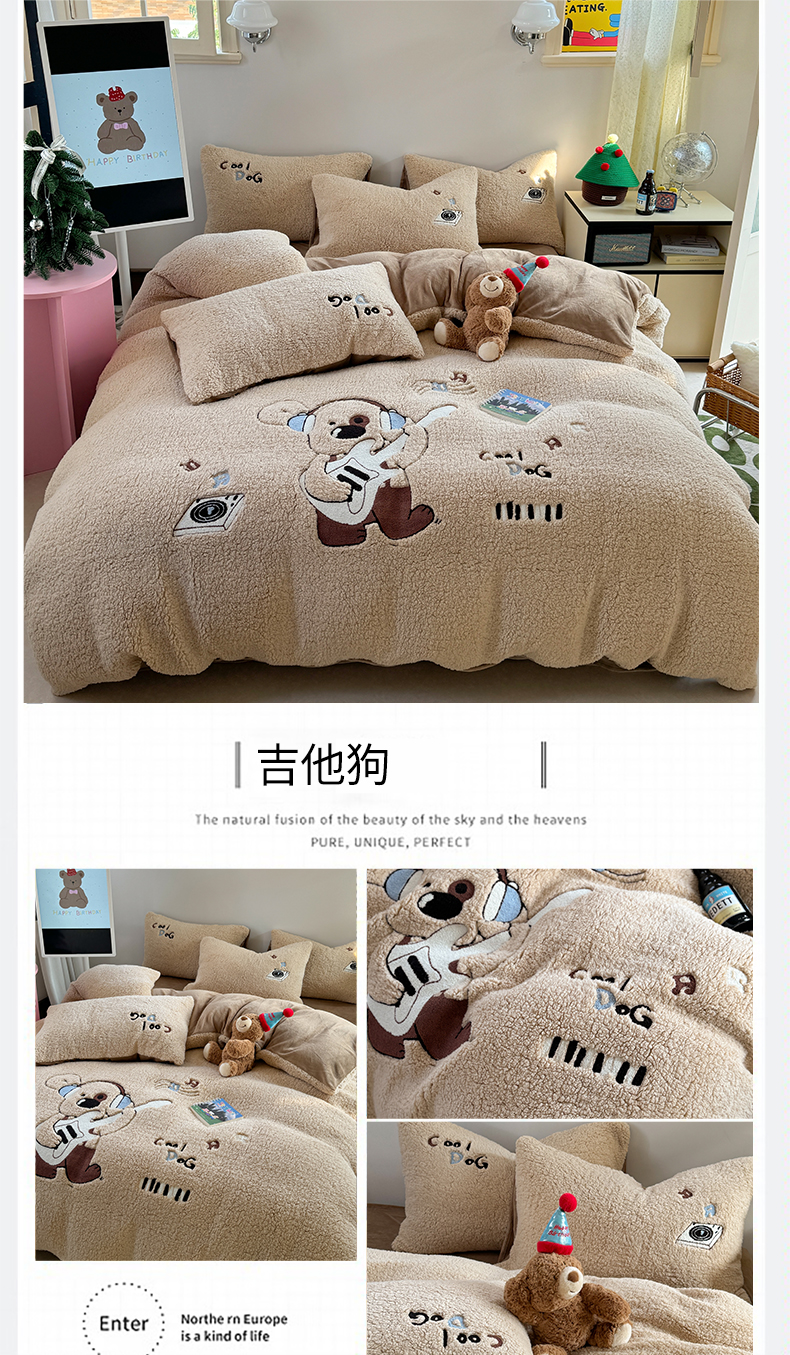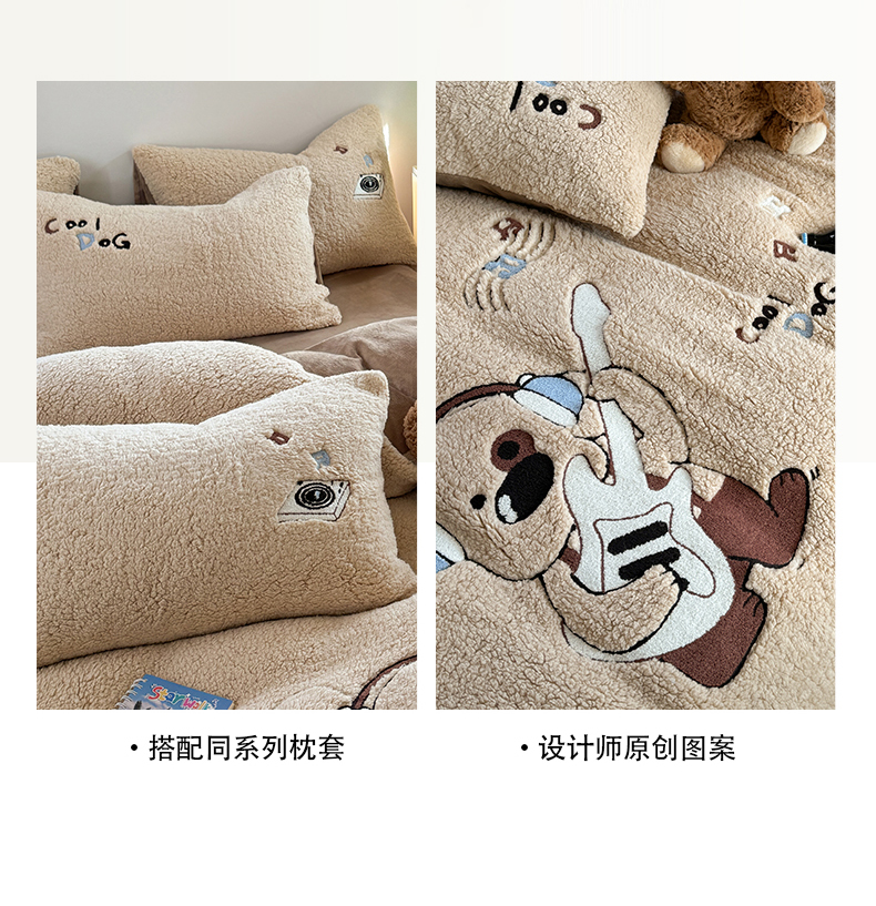 商品名称:眠屿家纺 2025新款羊羔绒毛巾绣四件套 吉他狗