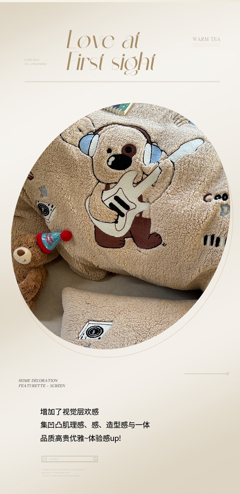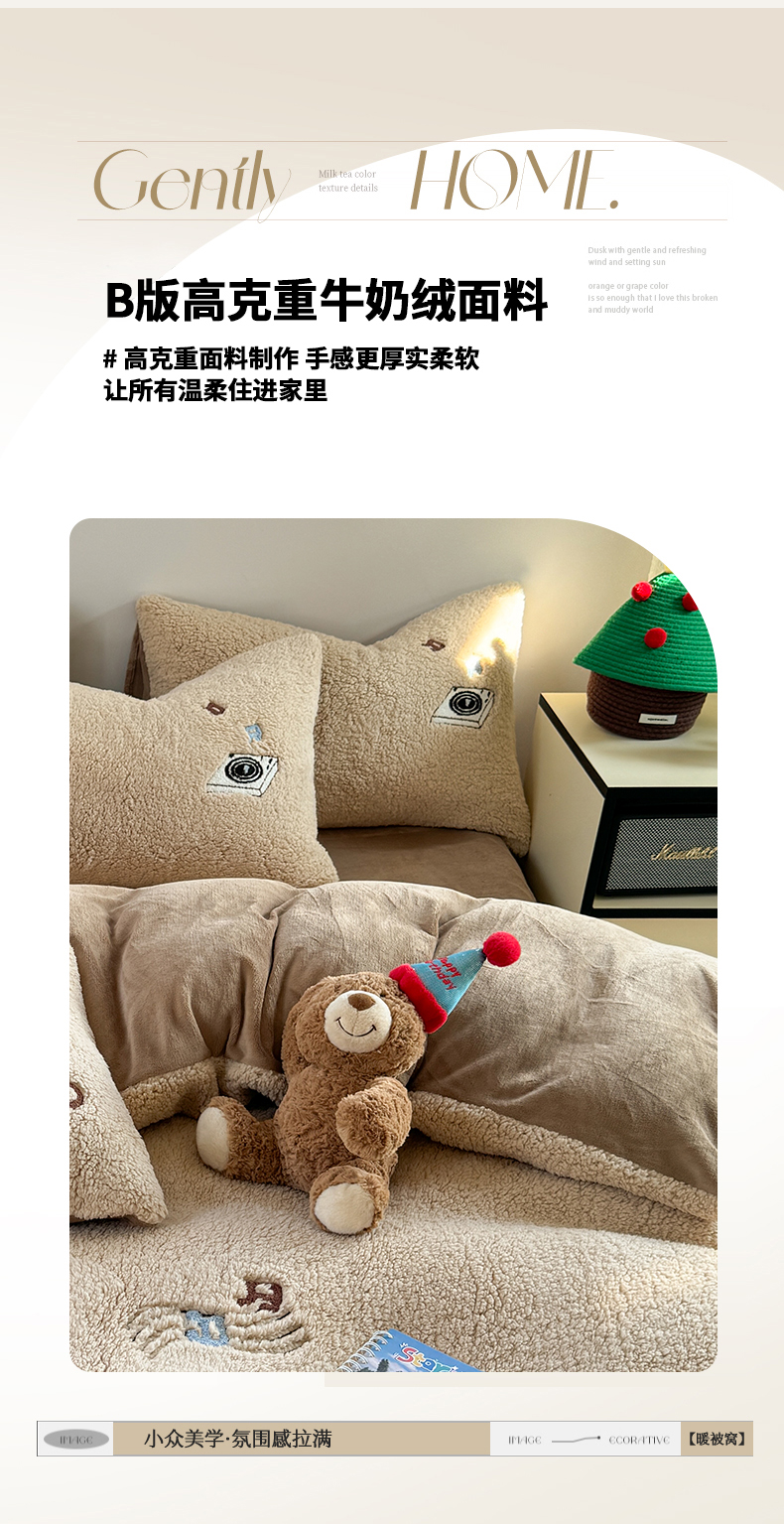 (总)眠屿家纺 2025新款加厚牛奶绒贴布绣四件套,棒球熊,动物朋友,欢乐音乐