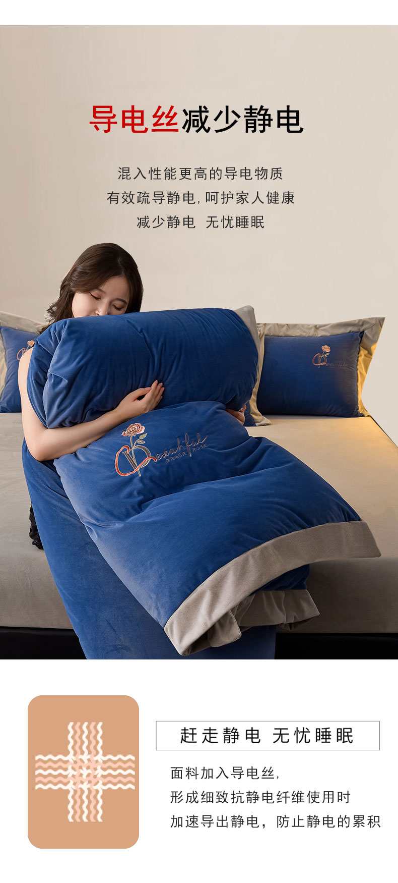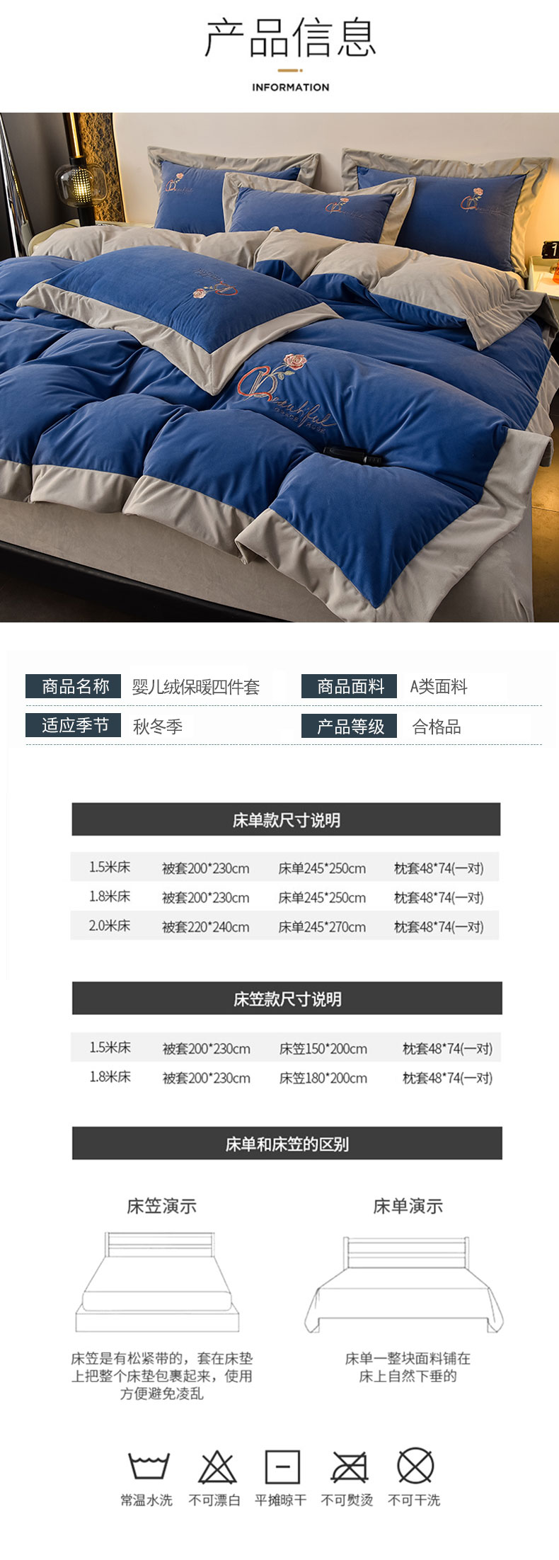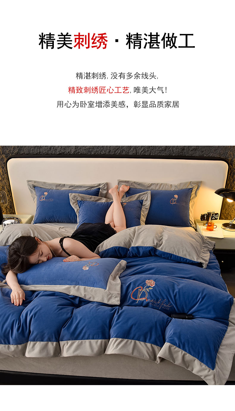 当前位置: 91家纺网 > 商品网购 > 床品套件 > 四件套 > 其它四件套 > 2024新款加厚保暖A类婴儿绒四件套-朵拉系列 朵拉-景泰蓝+星空灰