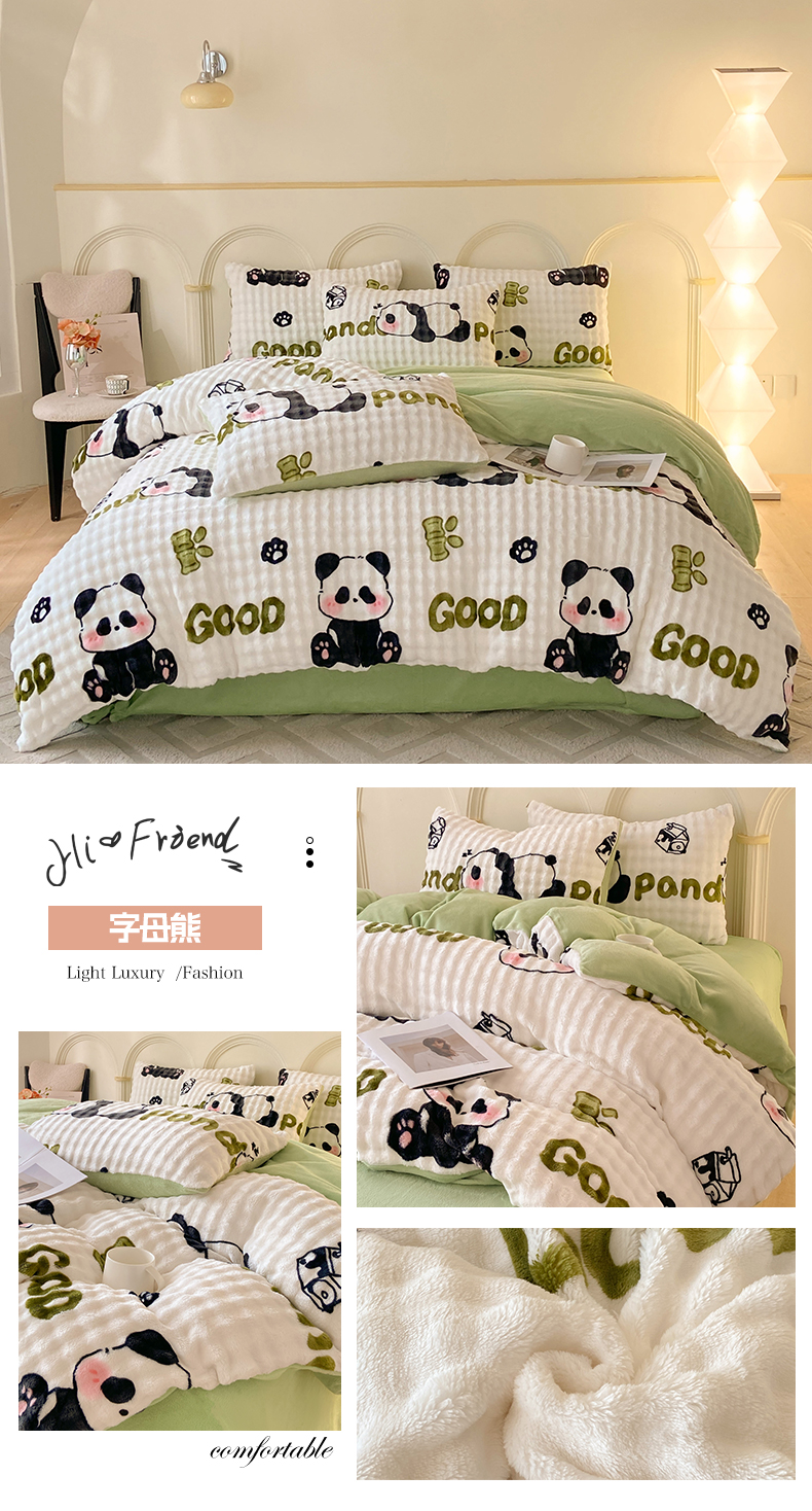 (总)逸尚阁 2024新款牛奶绒泡泡印花四件套