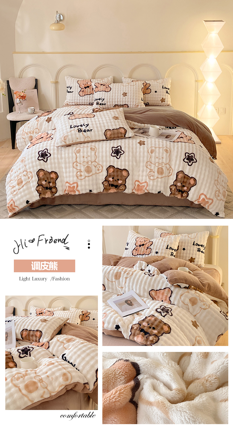 商品名称:(总)逸尚阁 2024新款牛奶绒泡泡印花四件套