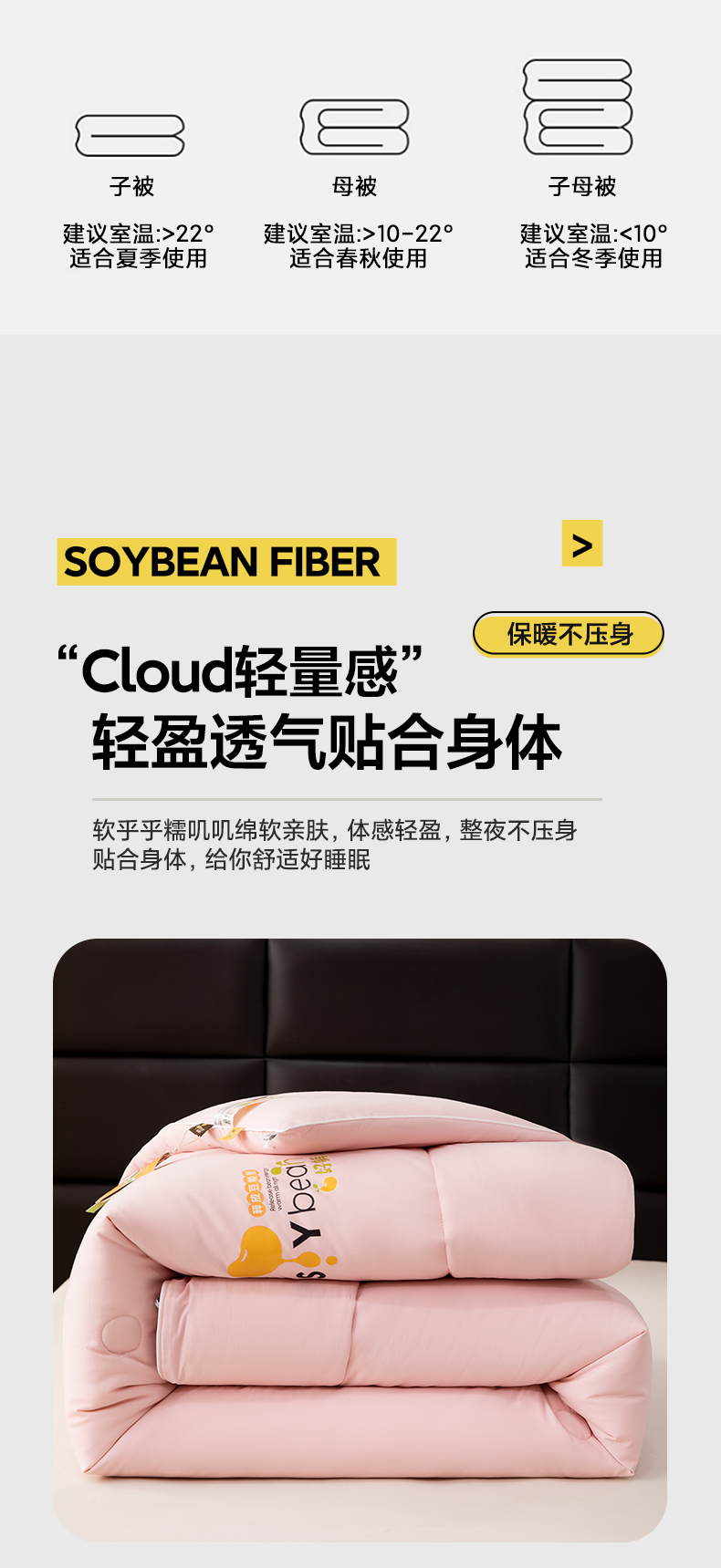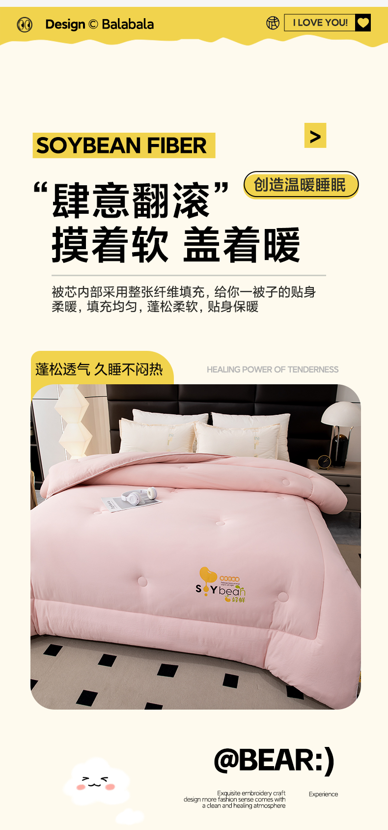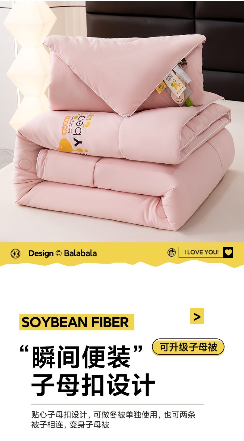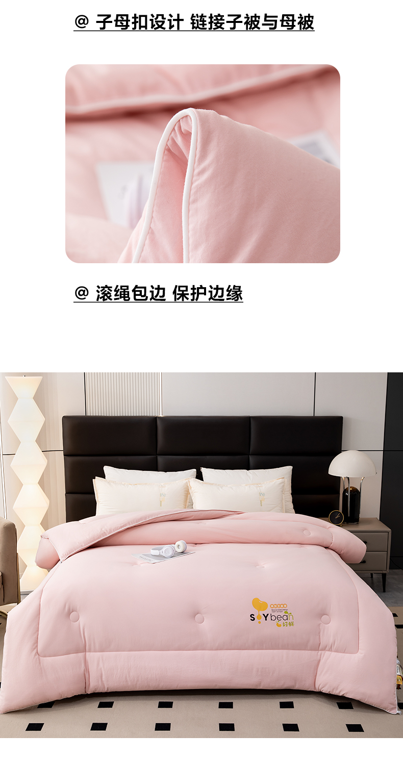 • 91家纺网 家纺一手货源 找家纺 爱来伊家纺 2024新款豆好鲜大豆纤维被加厚冬被春秋被子被芯子母被带子母扣 豆好鲜大豆被-樱花粉