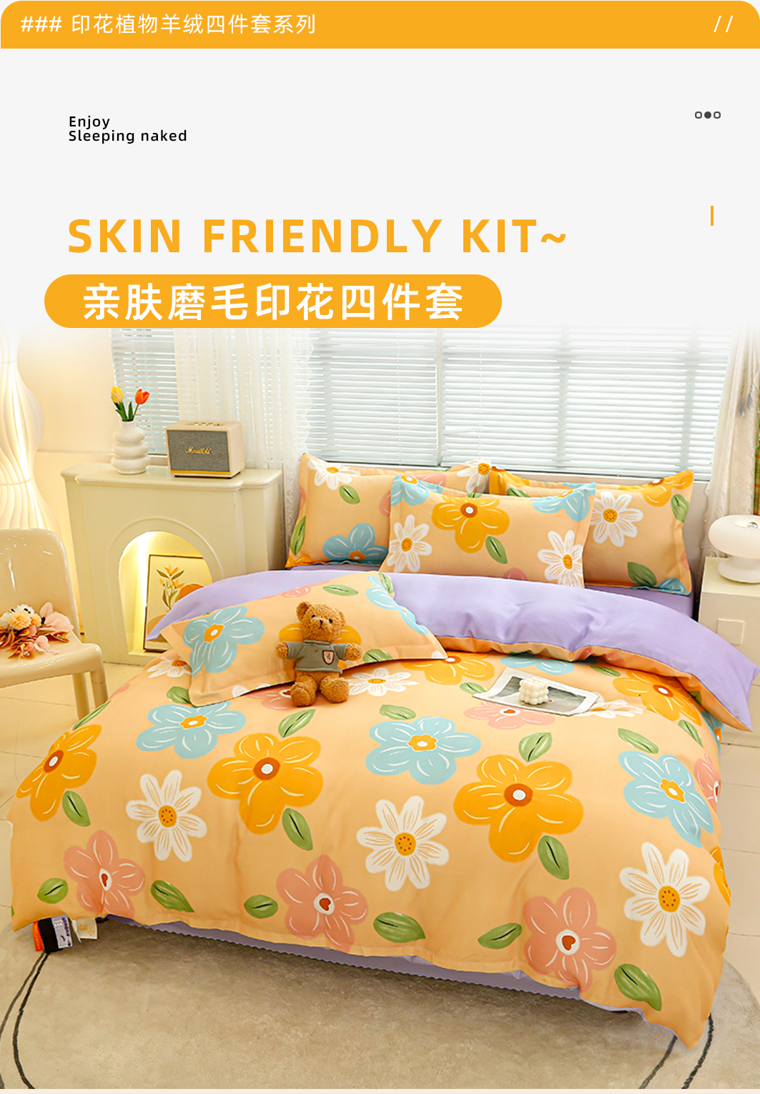 友承 2025新款亲肤磨毛植物羊绒印花四件套 花旗
