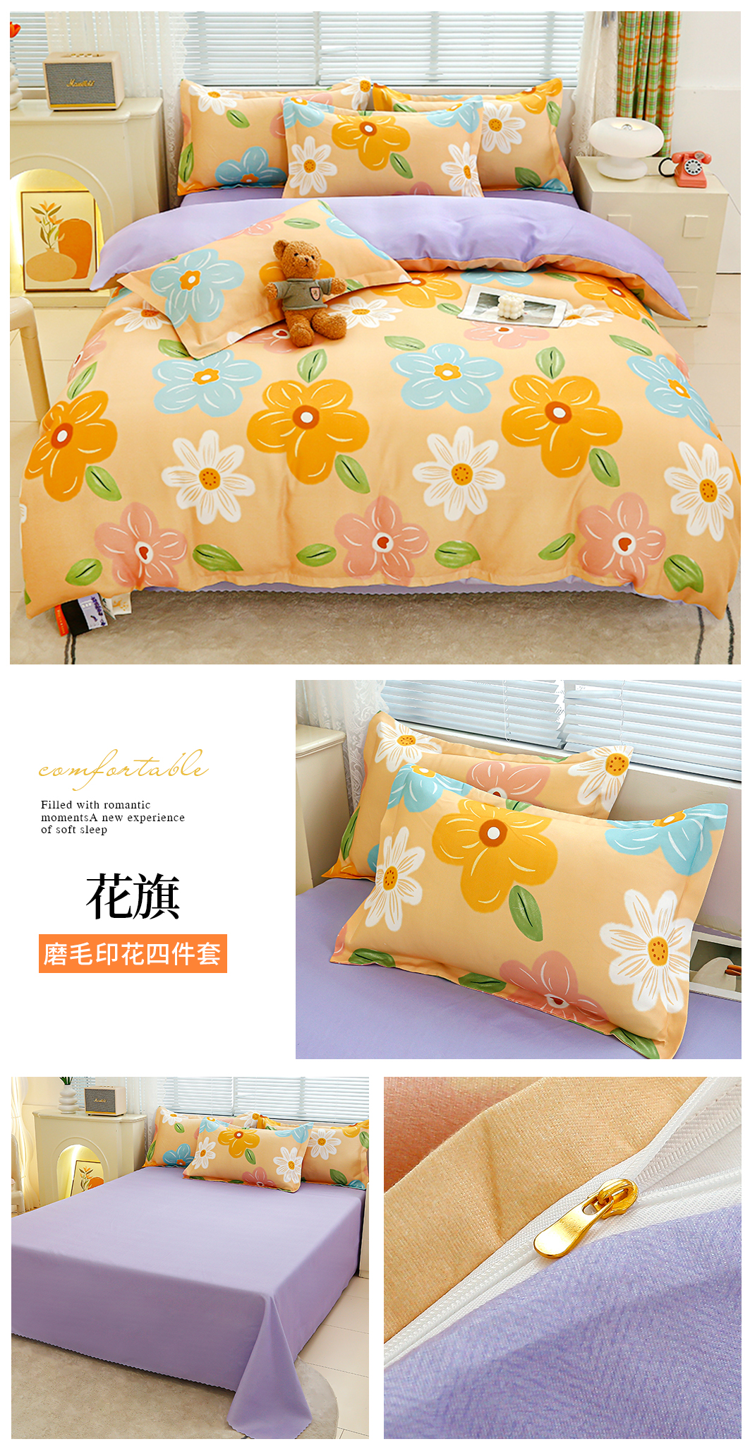 商品名称:友承 2025新款亲肤磨毛植物羊绒印花四件套 花旗