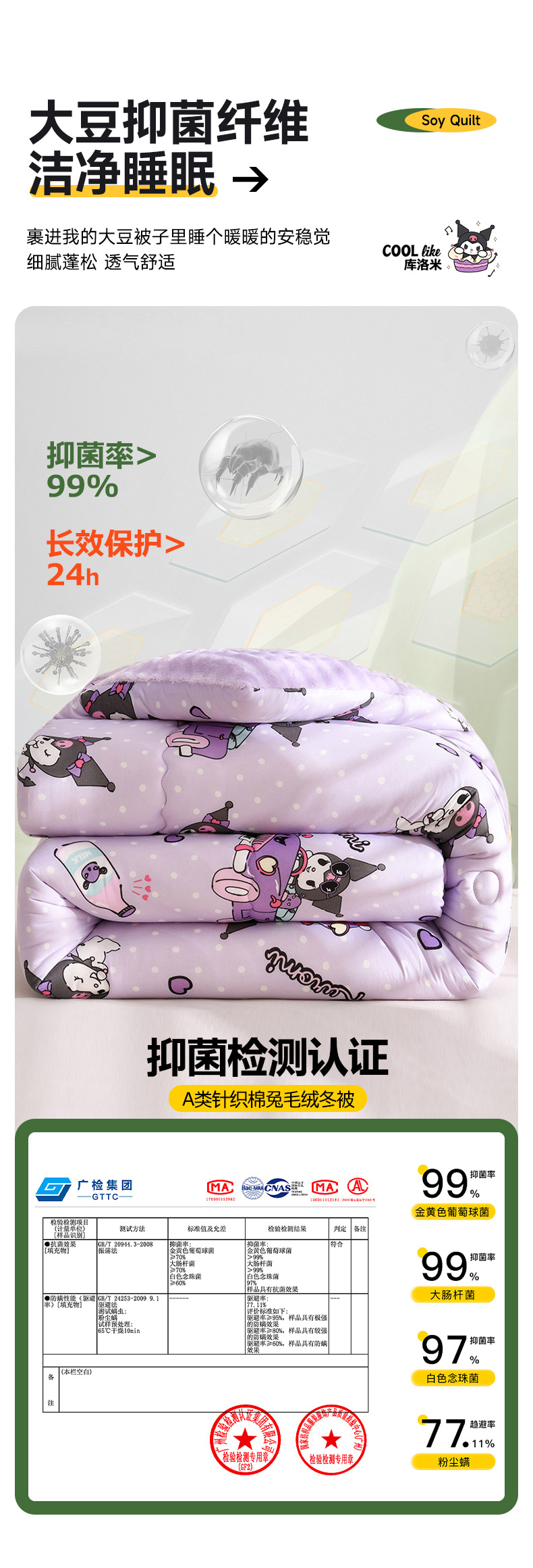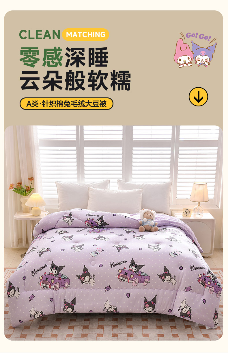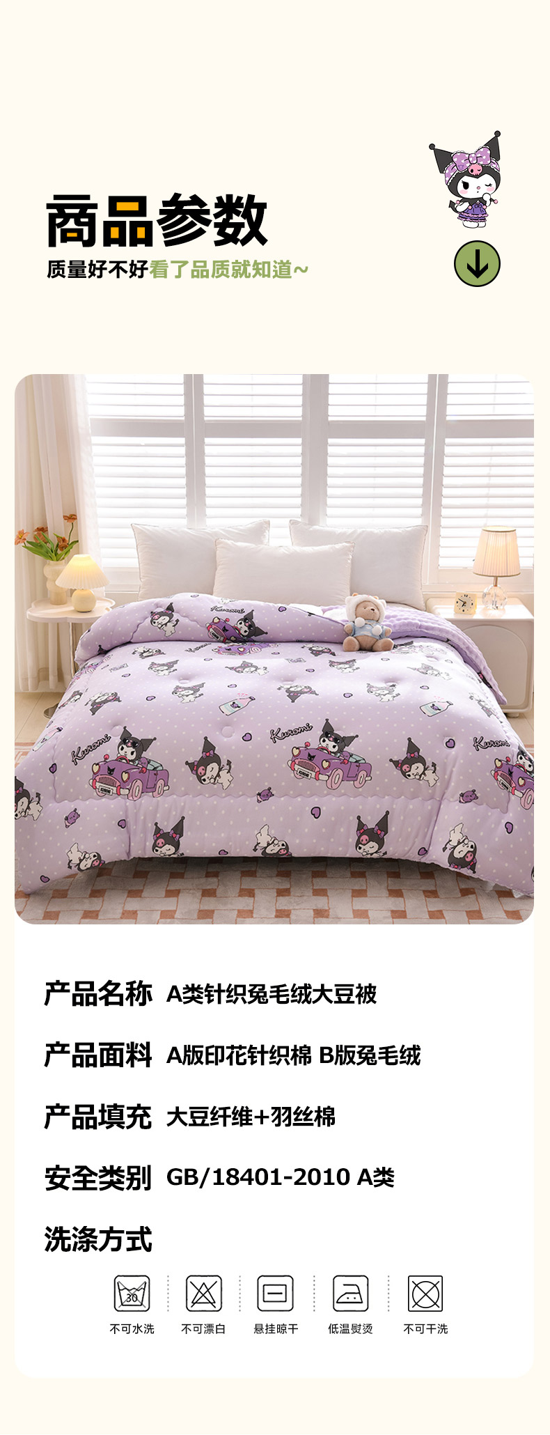 当前位置: 91家纺网 > 商品网购 > 被子 > 冬被 > 艾兜坊 2024新款A类针织棉兔毛绒被冬被春秋被被芯被子 库洛米