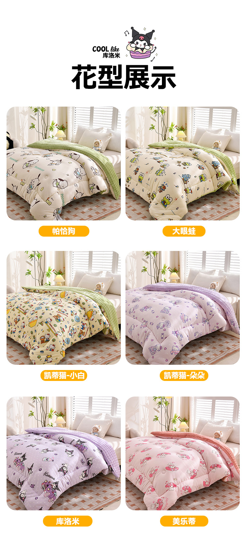 • 91家纺网 家纺一手货源 找家纺 (总)艾兜坊 2025新款三丽鸥水洗棉3D豆豆被 被子被芯,草莓美乐蒂,木马美乐蒂,幻影库洛米,樱桃库洛米,爱心库洛米,木马玉桂狗