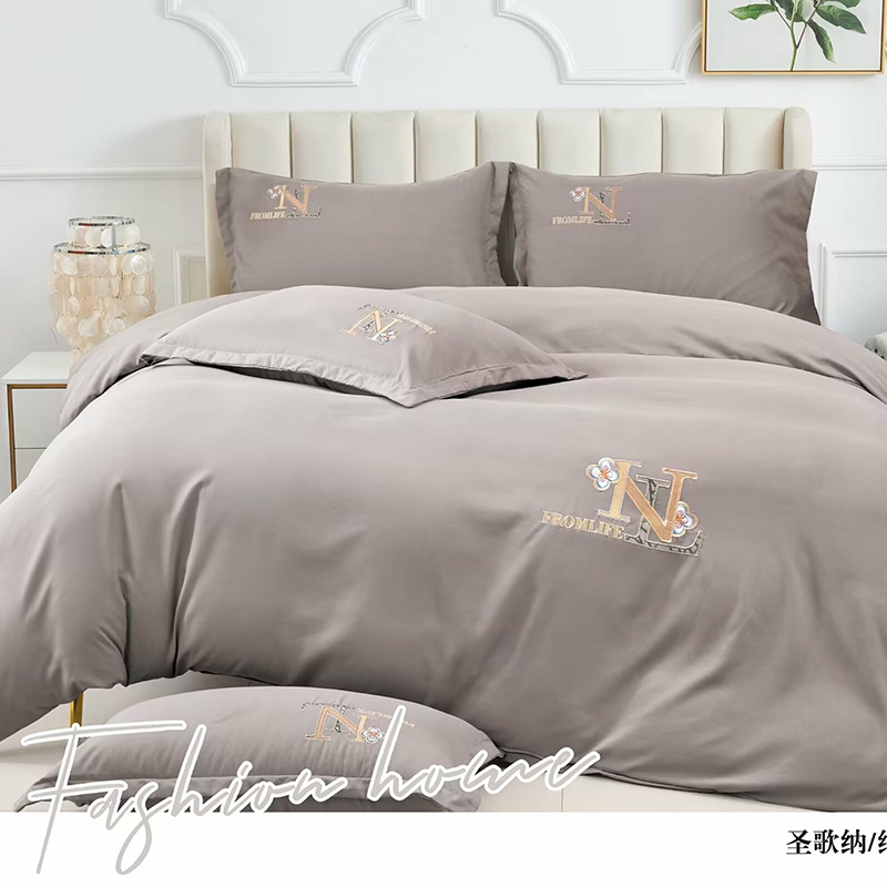 优纤家纺 2024新款亲肤舒适绣花四件套-圣歌纳 圣歌纳-绅士灰