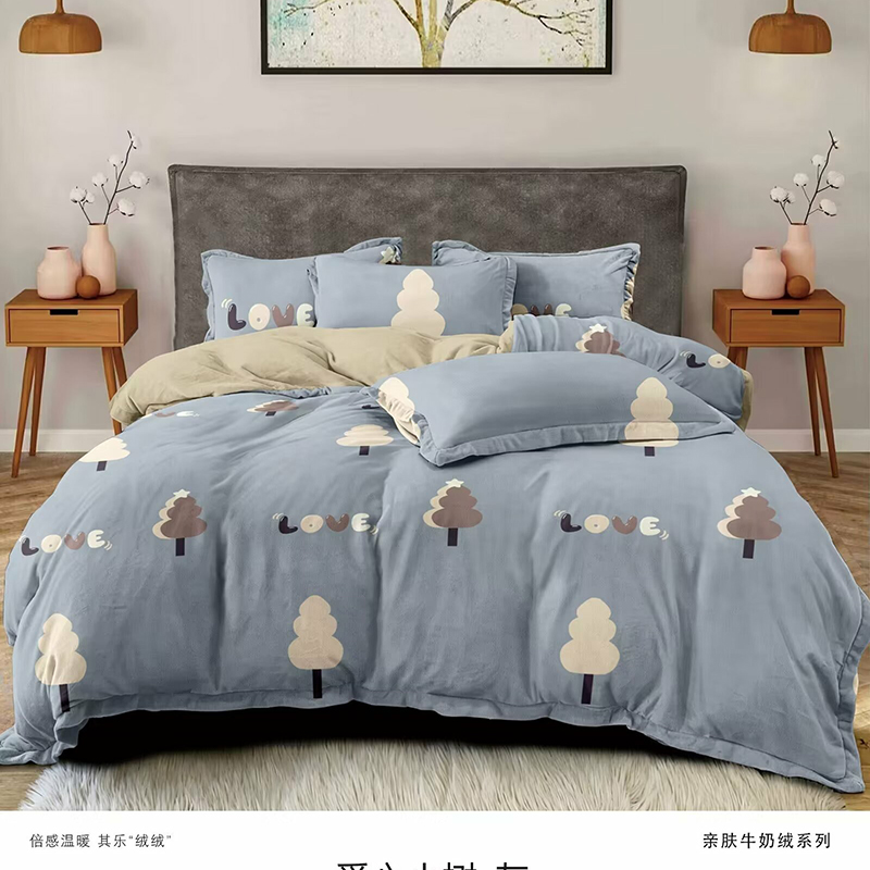 商品名称:优纤家纺 2024新款加厚保暖牛奶绒印花四件套 木马王国-蓝