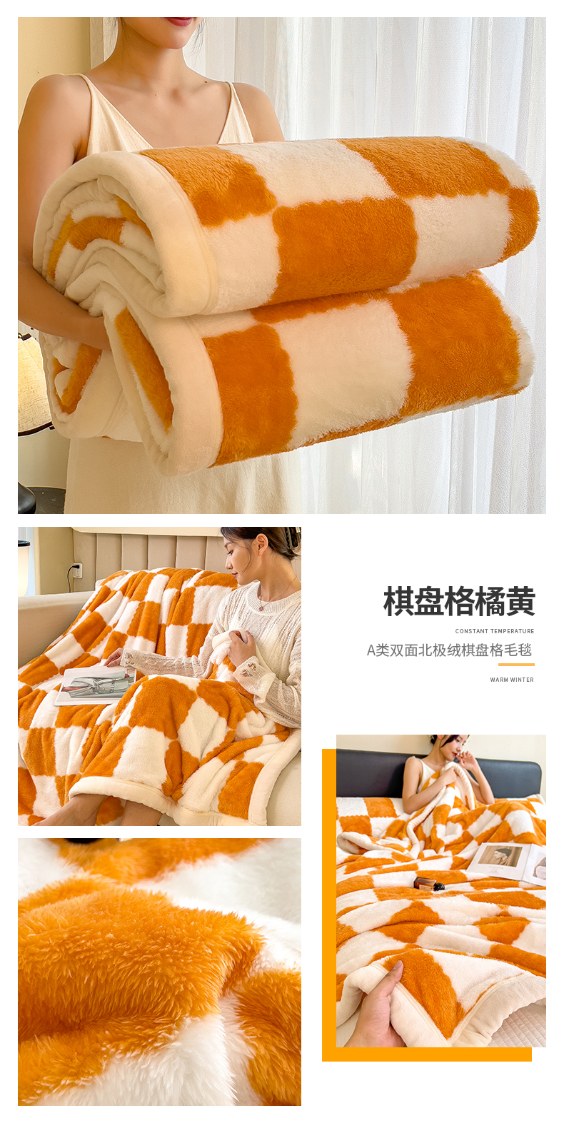 当前位置: 91家纺网 > 商品网购 > 毛毯休闲毯绒毯 > 毛毯 > 慕木家纺 2025新款A类北极绒棋盘格三层夹棉双面毛毯 单层双面毛毯-棋盘格橘黄