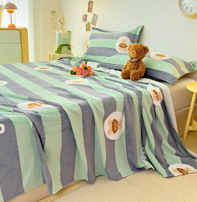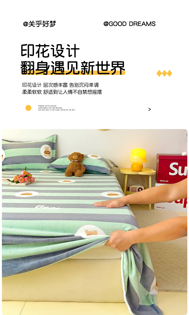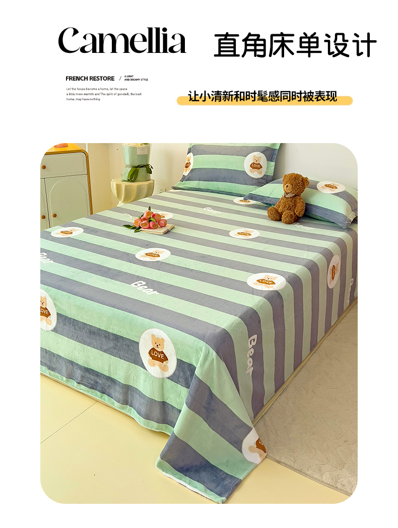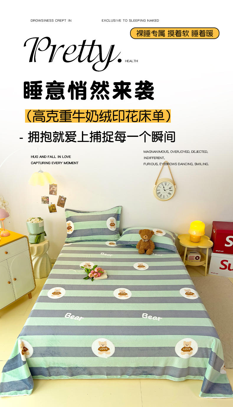 大柏树 2025新款A类高克重亲肤舒适牛奶绒印花四件套-单床单可定制 布琪小熊-绿