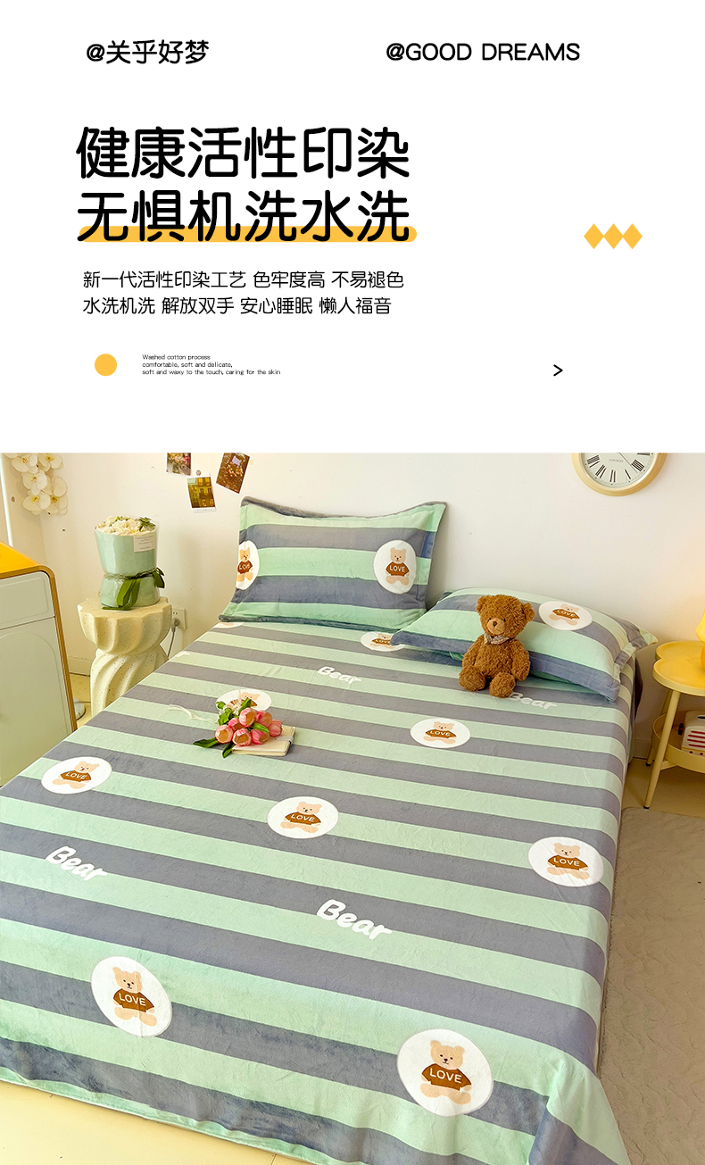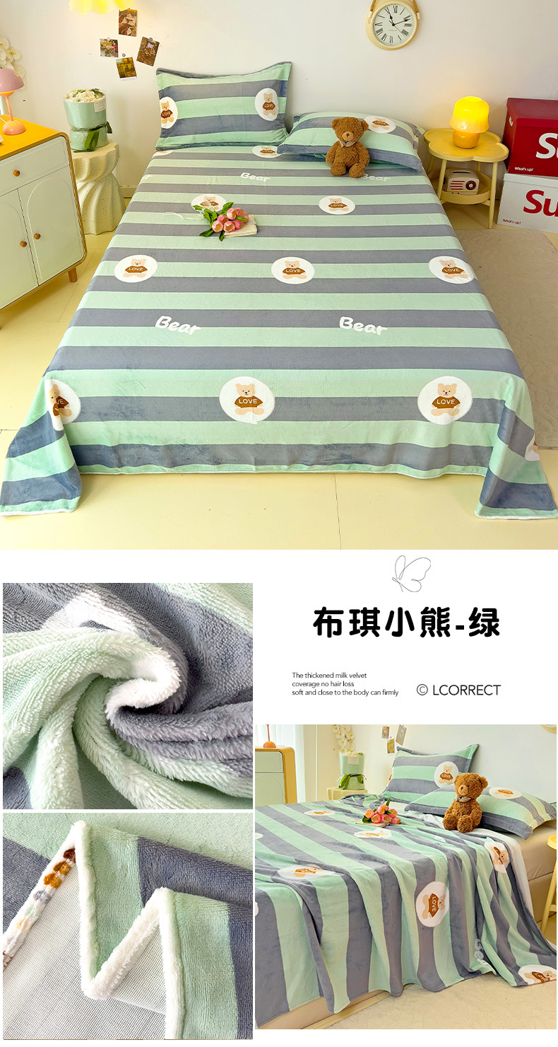 商品名称:大柏树 2025新款A类高克重亲肤舒适牛奶绒印花四件套-单床单可定制 布琪小熊-绿