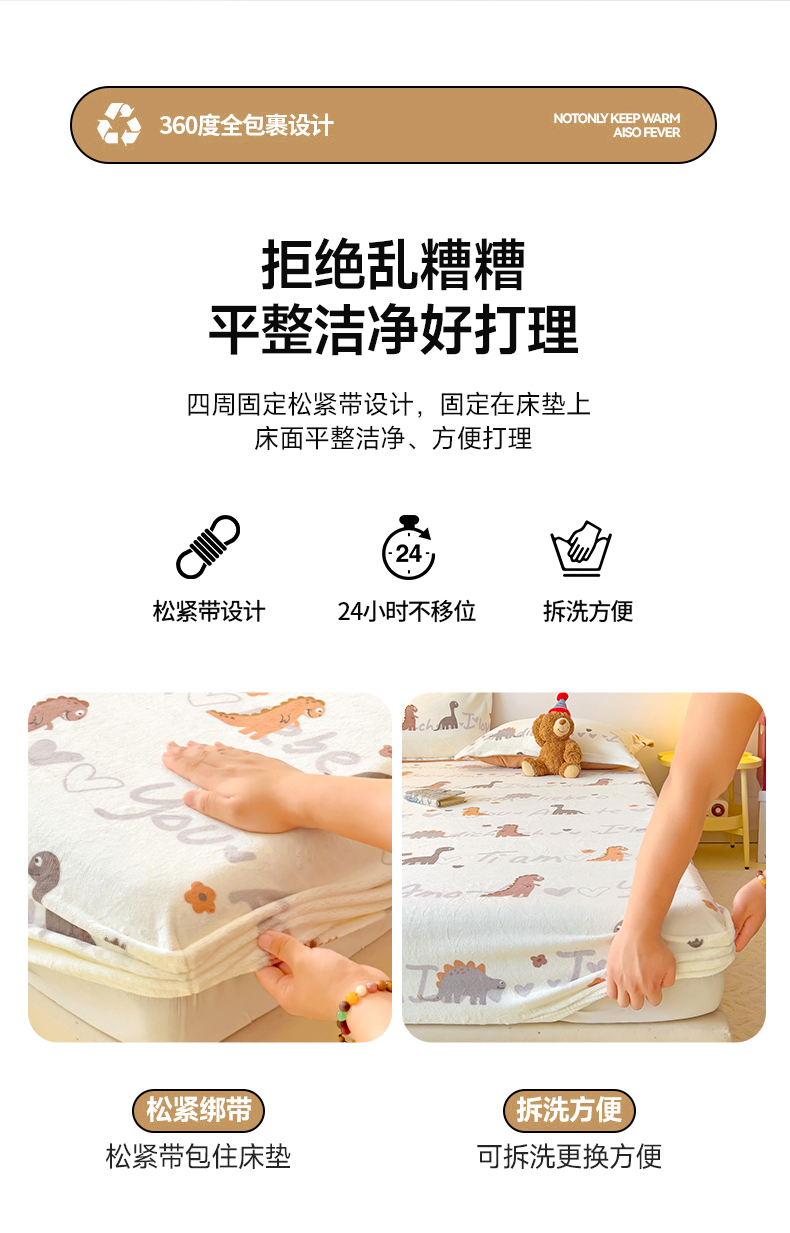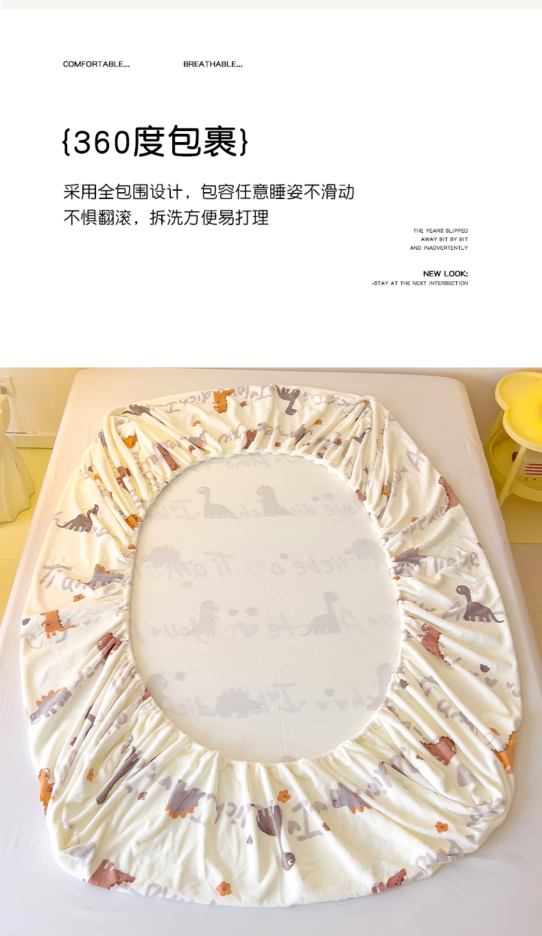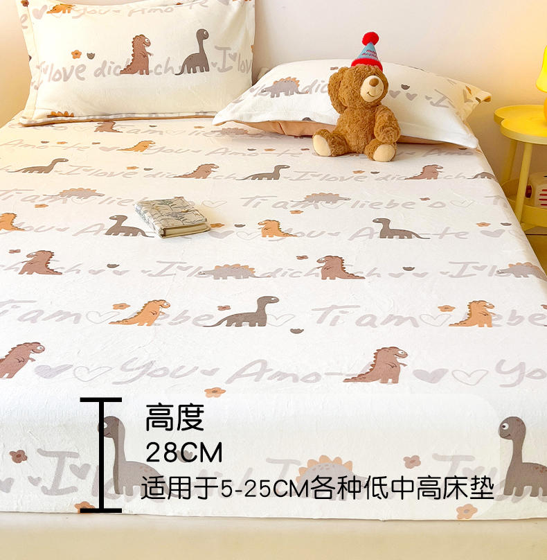 大柏树 2025新款A类高克重亲肤舒适牛奶绒印花四件套-单床笠可定制 小恐龙