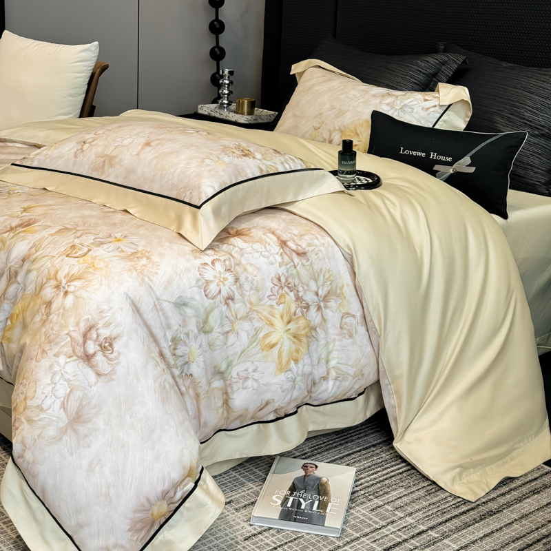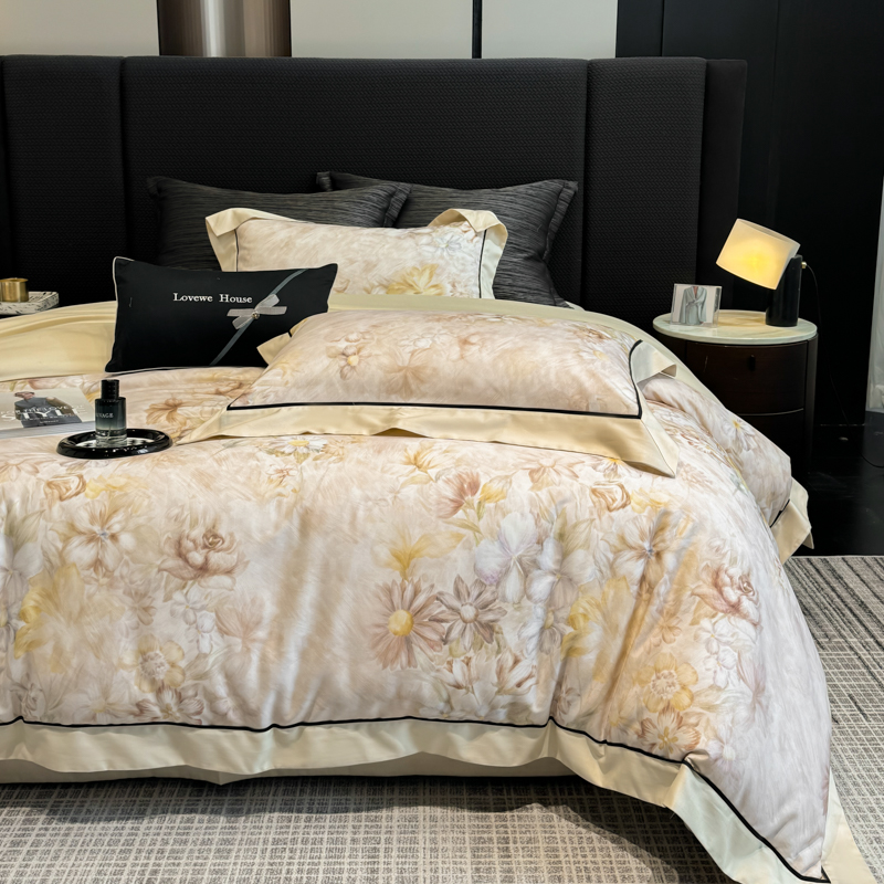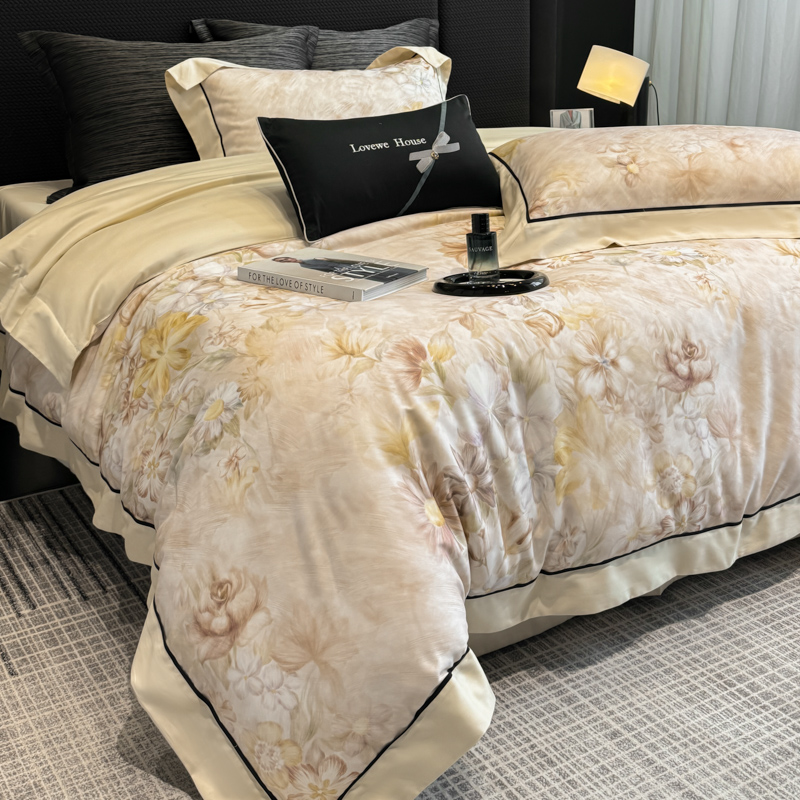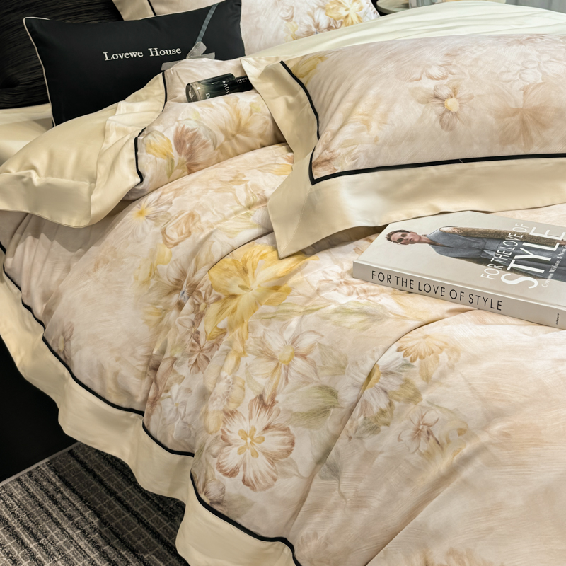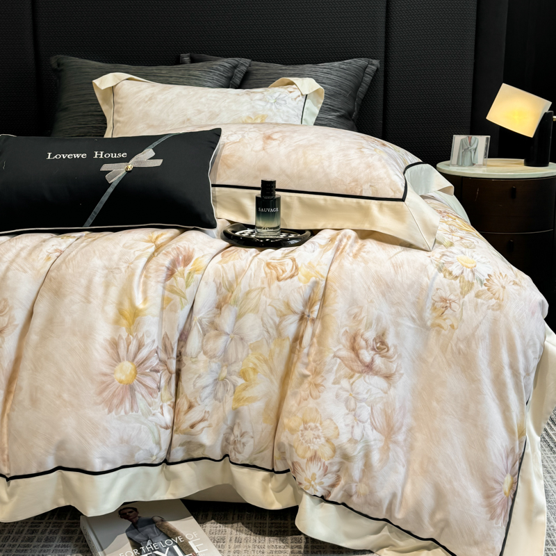 商品名称:若未家居 LOVEWE HOUSE 2025新款秋冬50支轻磨毛天丝磨毛数码印花四件套-可颂(控价券后不低于378) 可颂-浅香槟