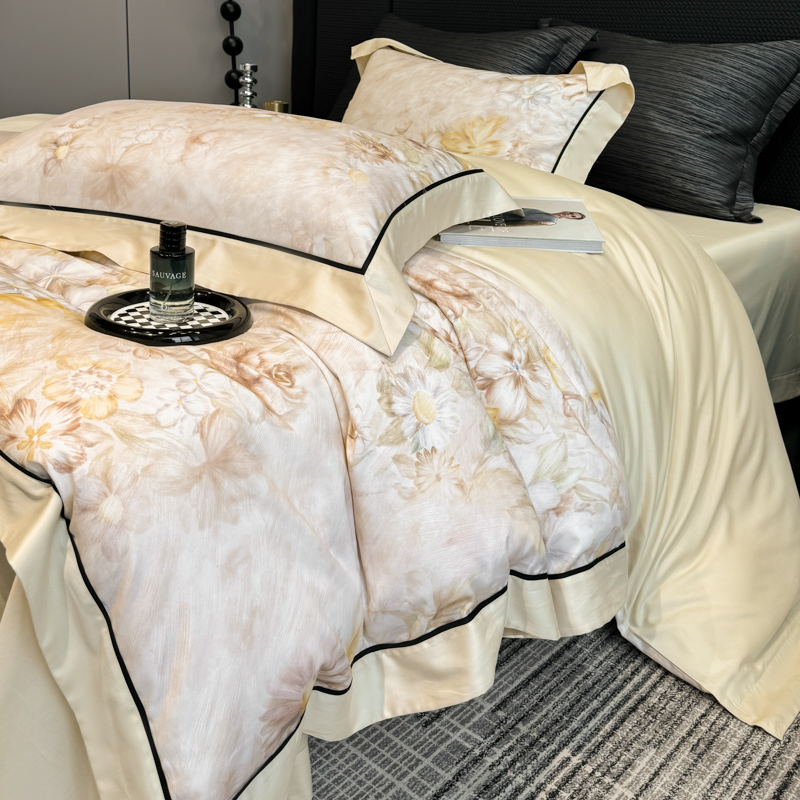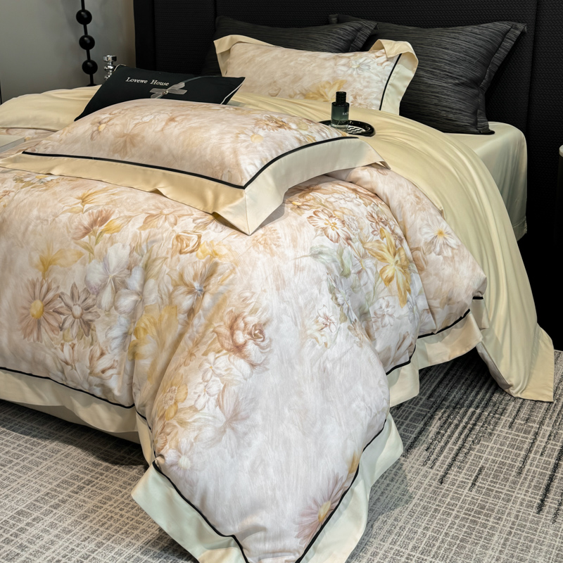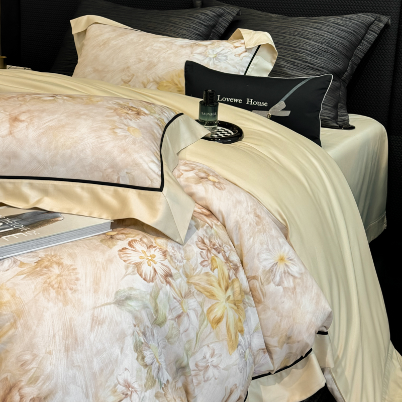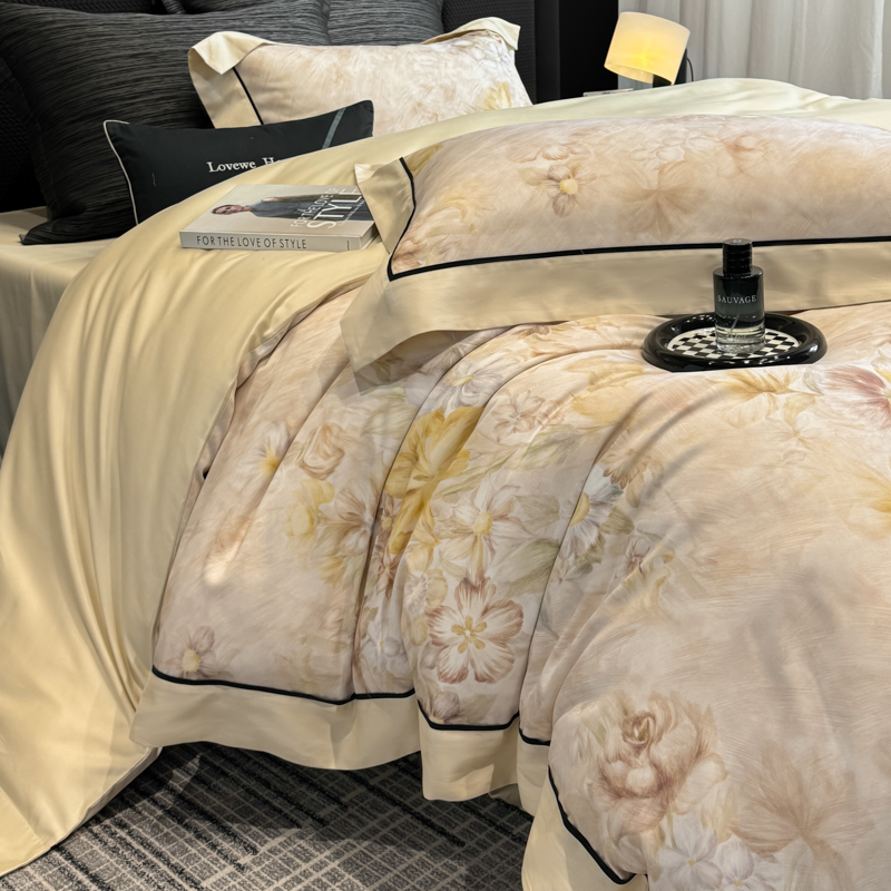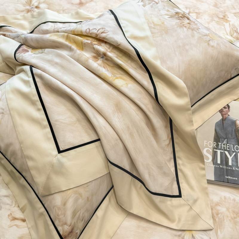 商品名称:若未家居 LOVEWE HOUSE 2025新款秋冬50支轻磨毛天丝磨毛数码印花四件套-可颂(控价券后不低于378) 可颂-浅香槟