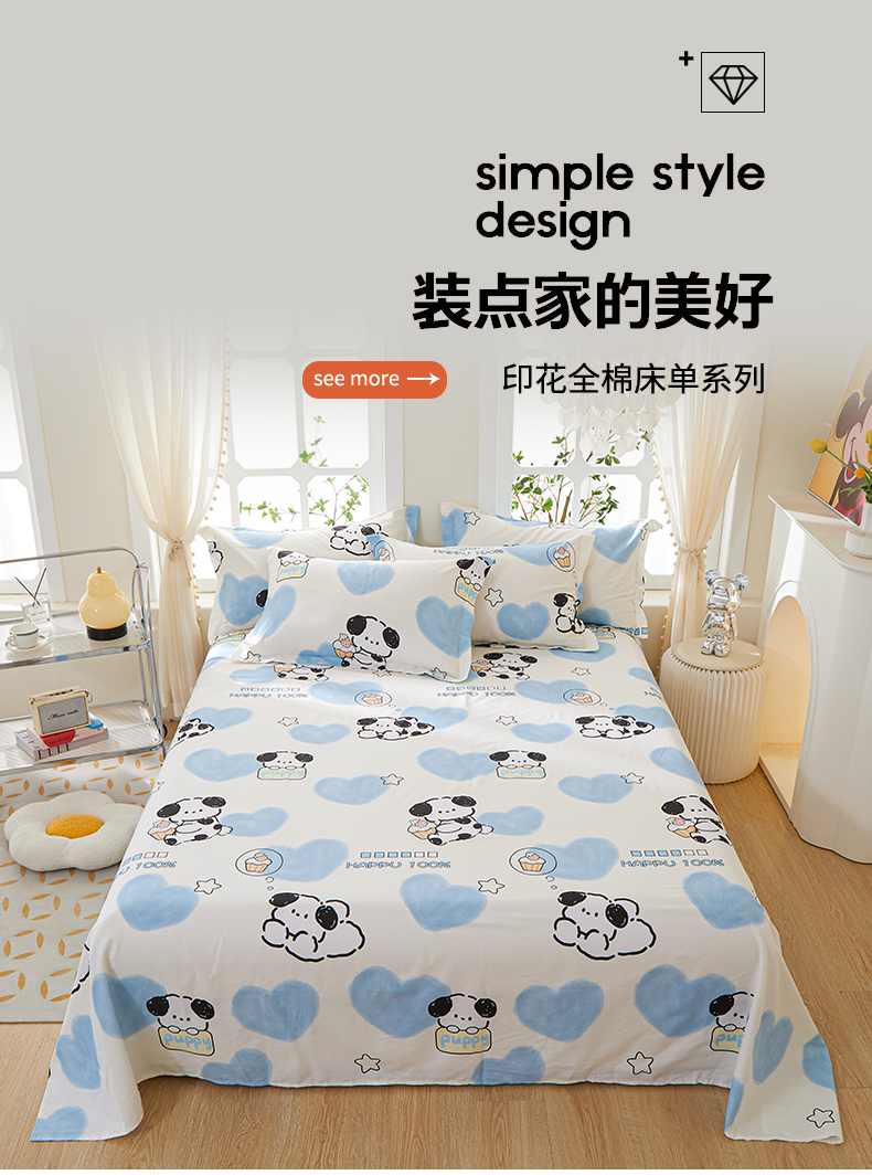钰伶 2025新款全棉简约12868纯棉单床单班尼狗A版