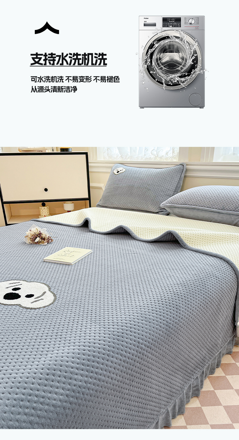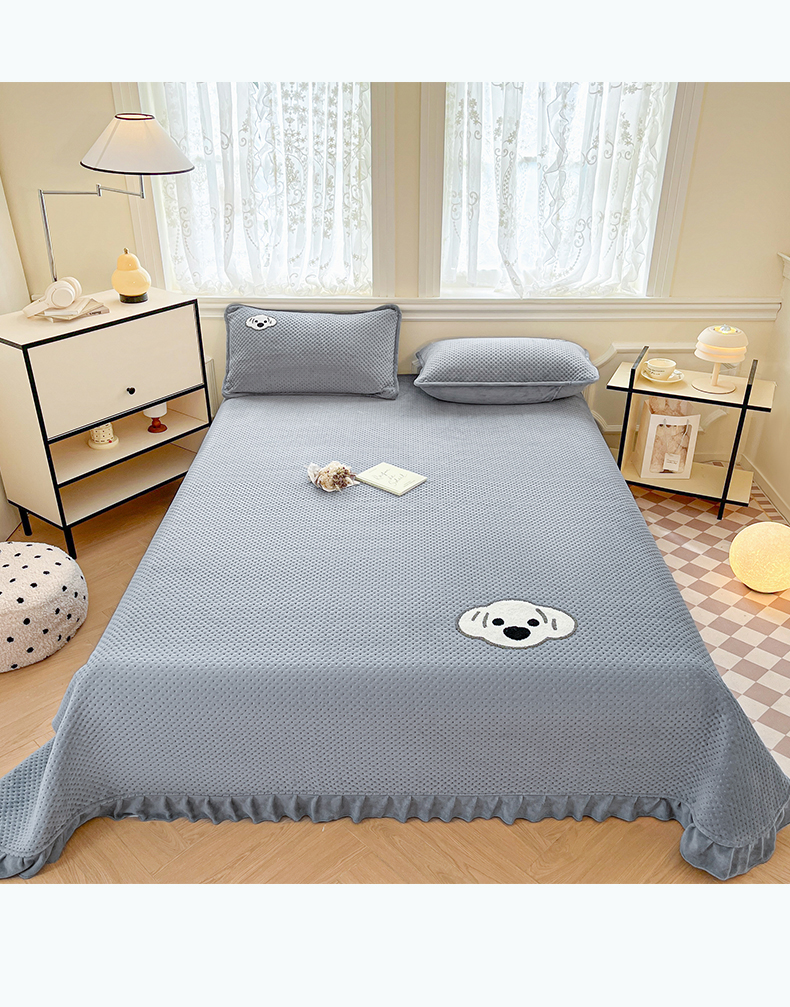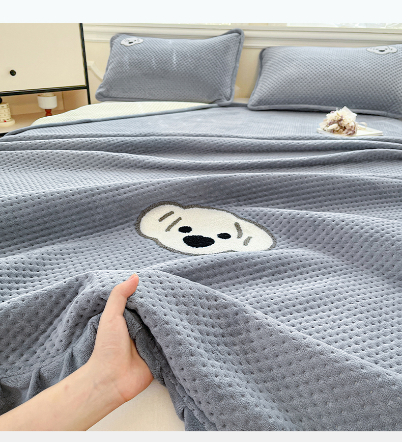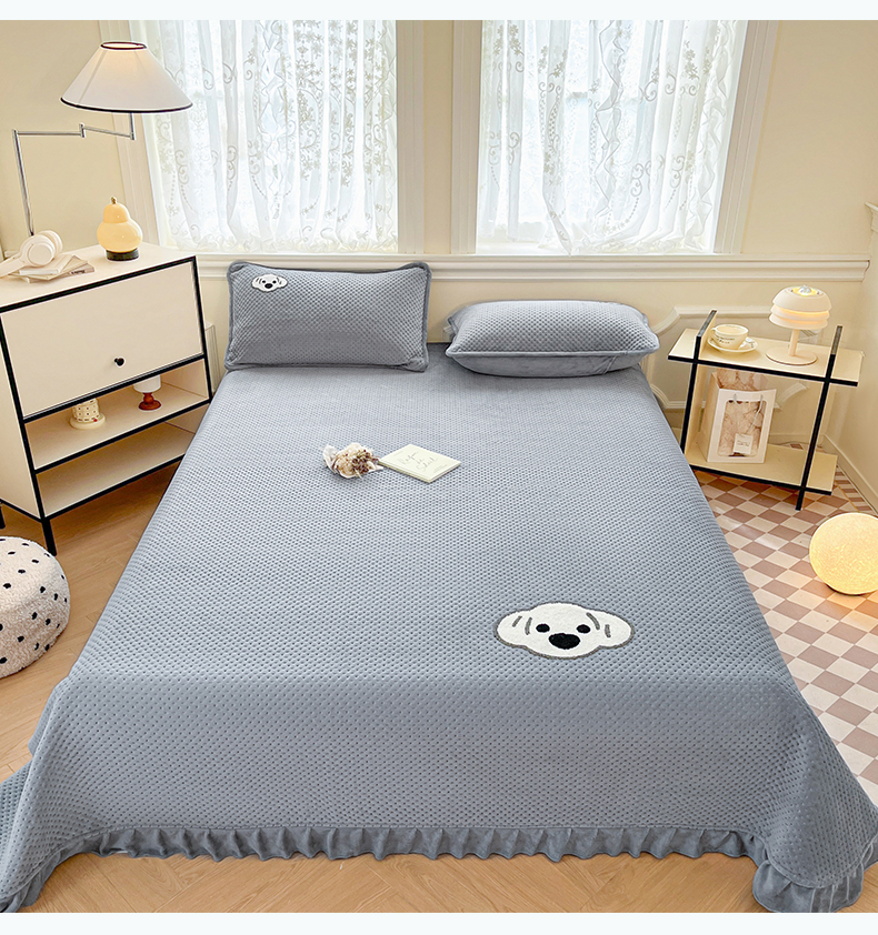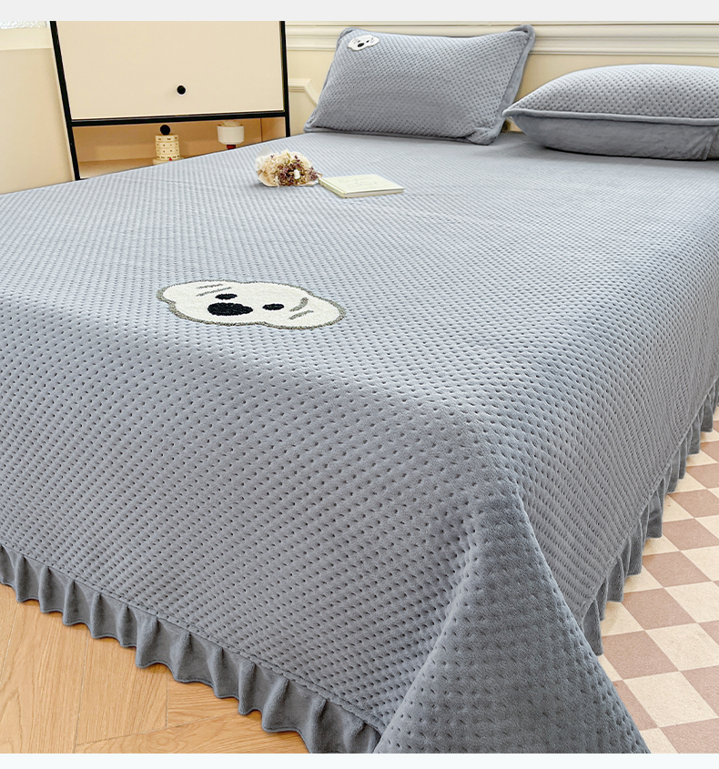 商品名称:居眠 2024新款华夫格毛巾绣夹棉床单 考拉-星灰