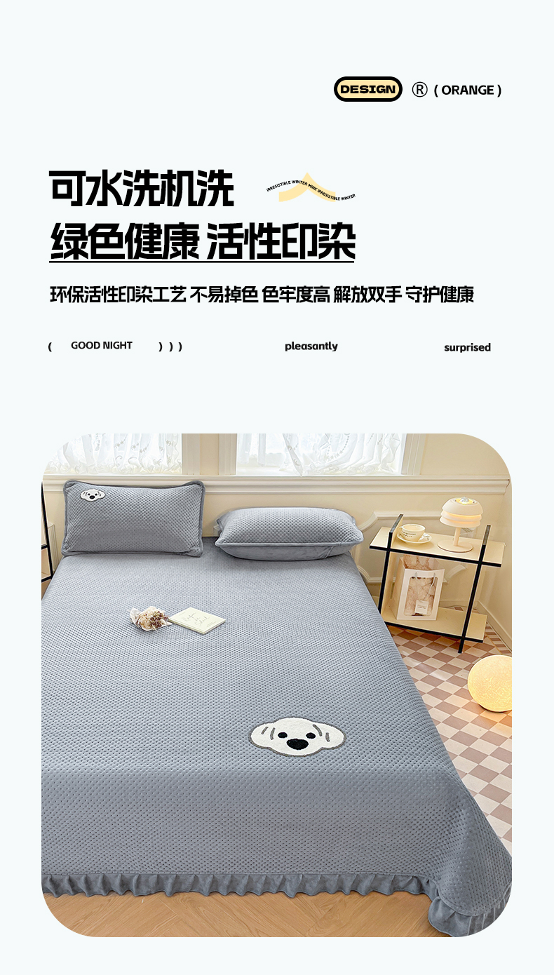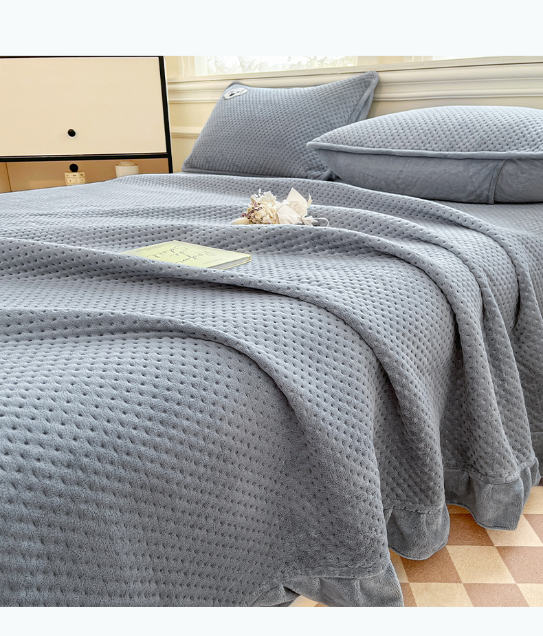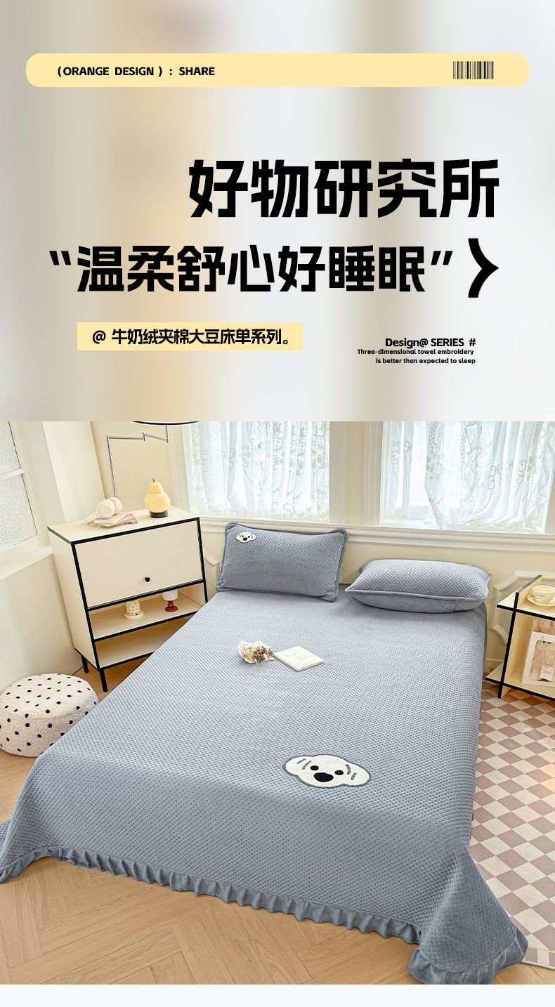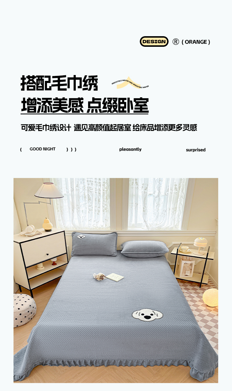 商品名称:居眠 2024新款华夫格毛巾绣夹棉床单 考拉-星灰