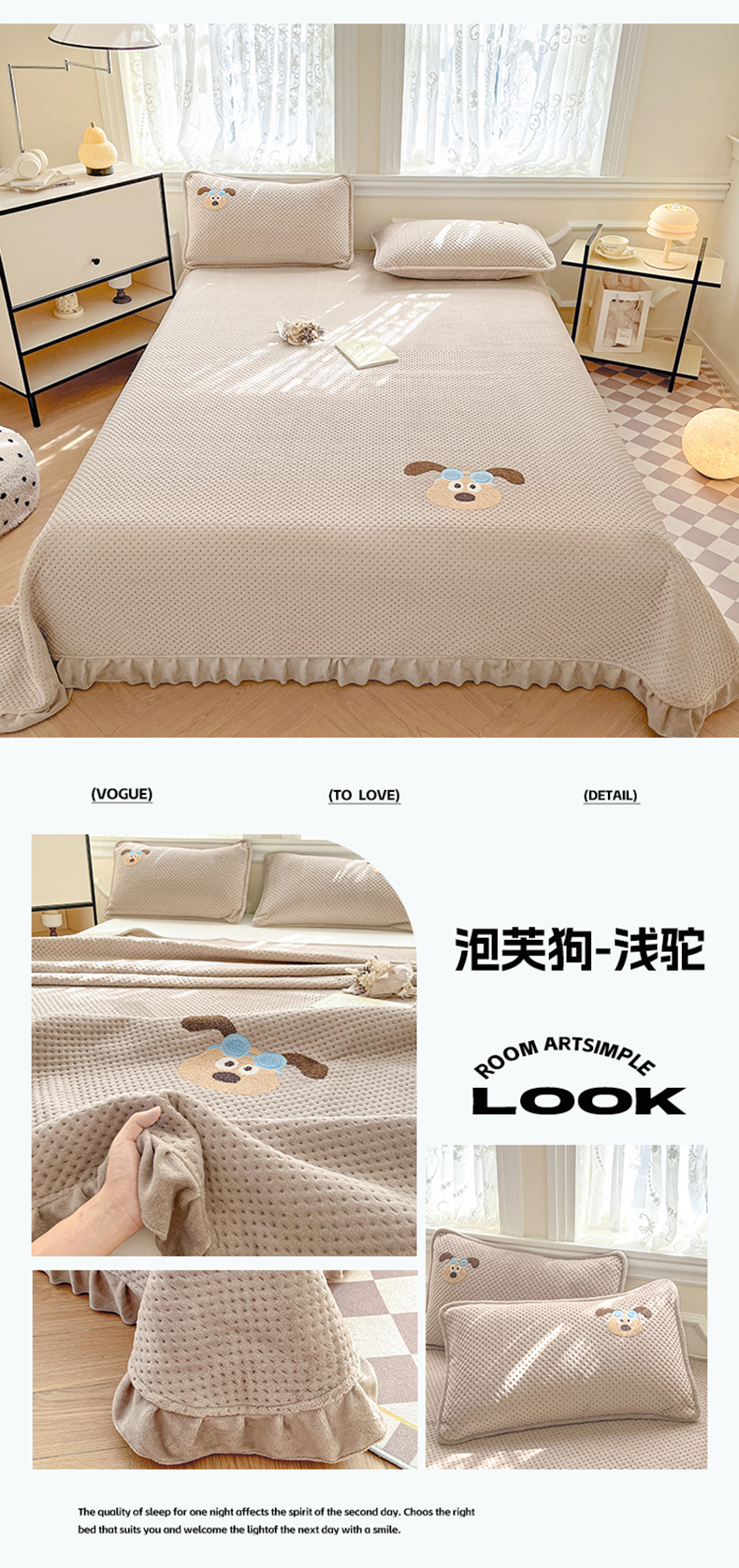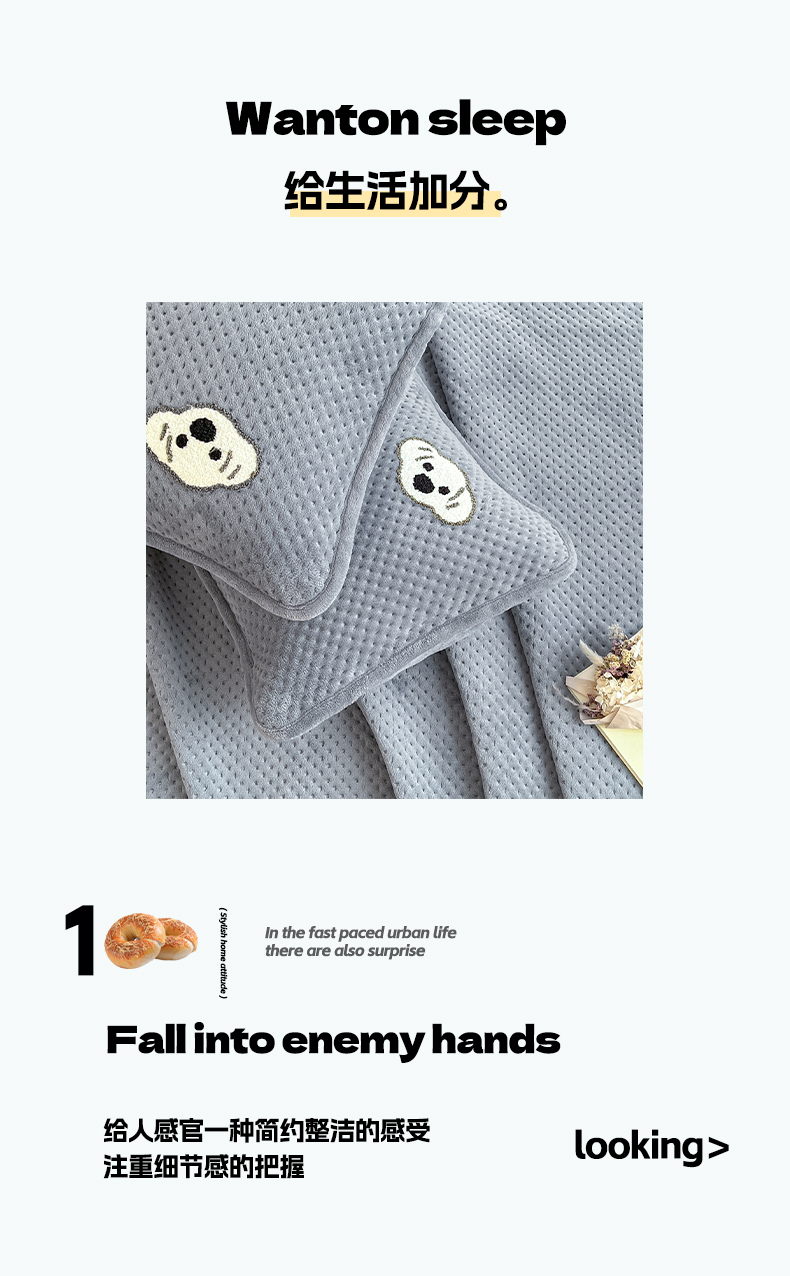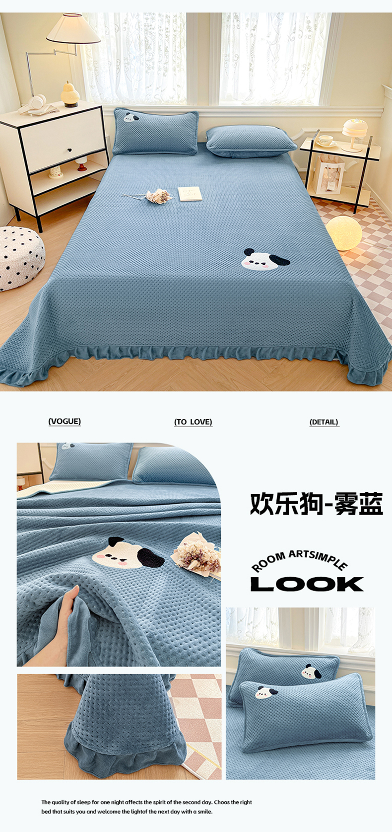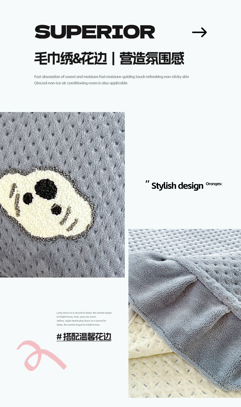 商品名称:居眠 2024新款华夫格毛巾绣夹棉床单 考拉-星灰