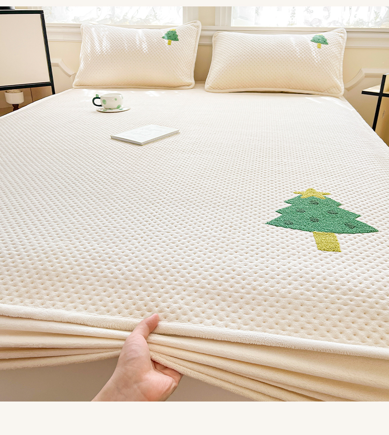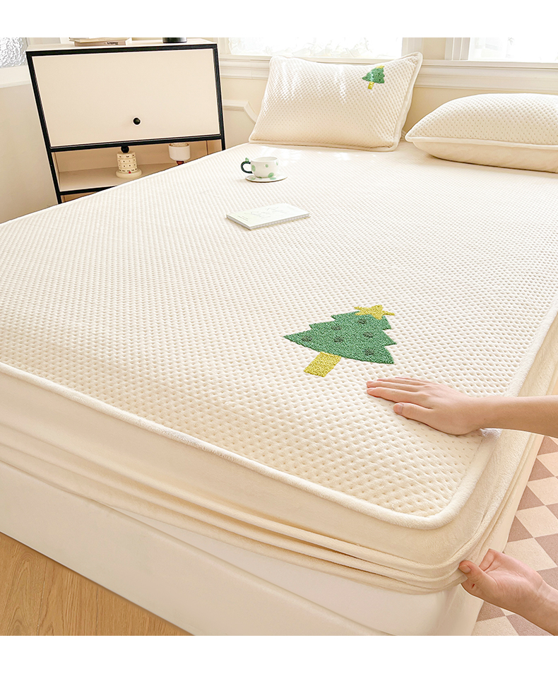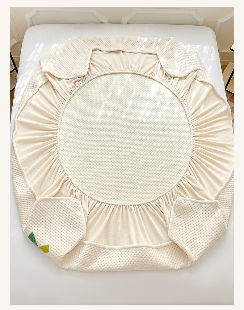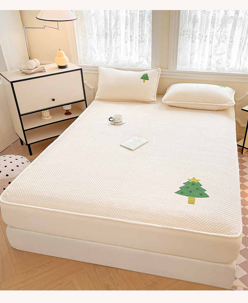居眠 2024新款华夫格毛巾绣夹棉床笠 夹棉款幸运树-奶白
