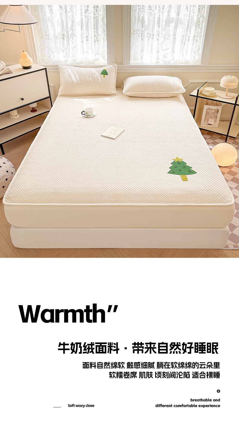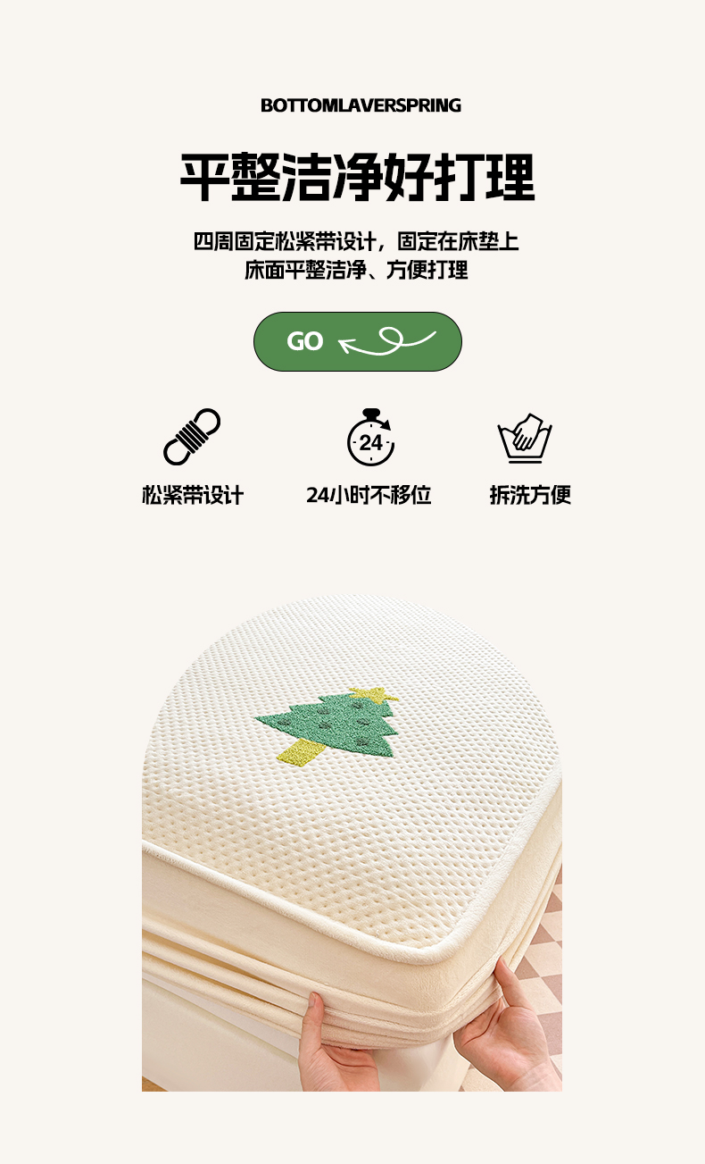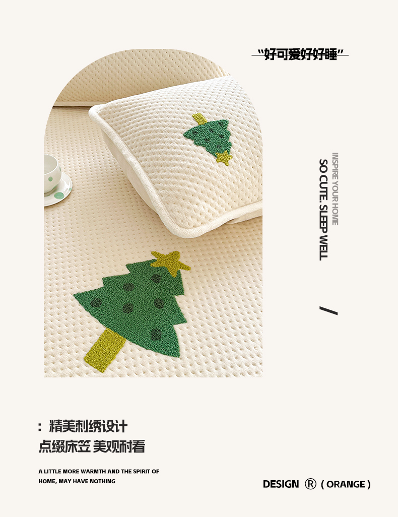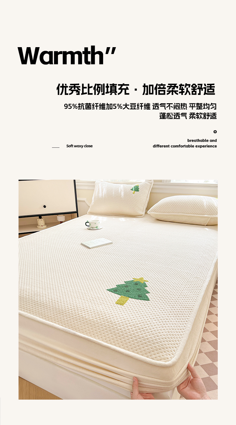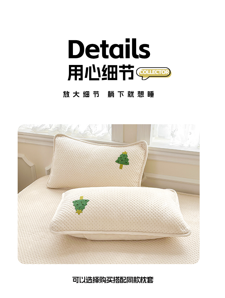 商品名称:居眠 2024新款华夫格毛巾绣夹棉床笠 夹棉款幸运树-奶白