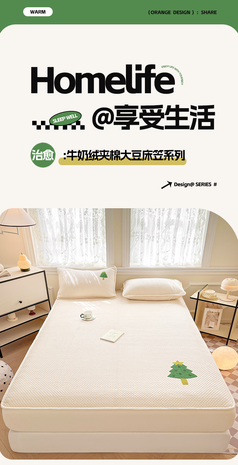 (总)居眠 2025新款防水夹棉床笠-清雅,清雅-粉色,清雅-灰色,清雅-卡其,清雅-绿色,清雅-米白,清雅-深蓝