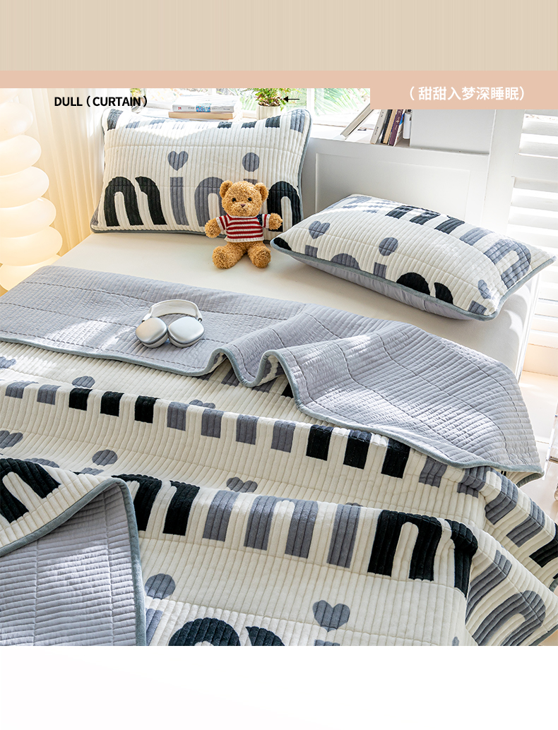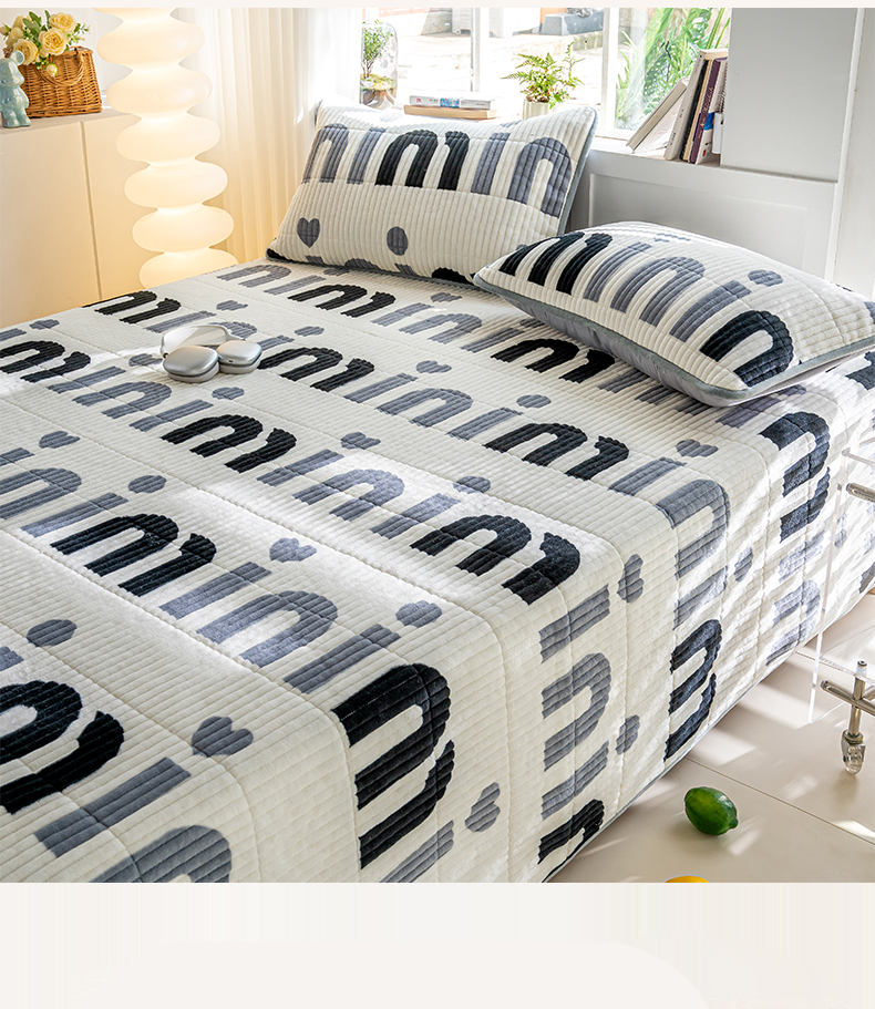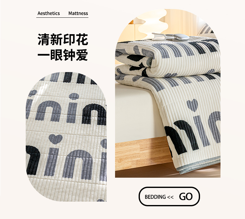 X猫先生 2024新款牛奶绒床盖床垫小清新印花夹棉水洗棉炕盖双面两用 字节律动