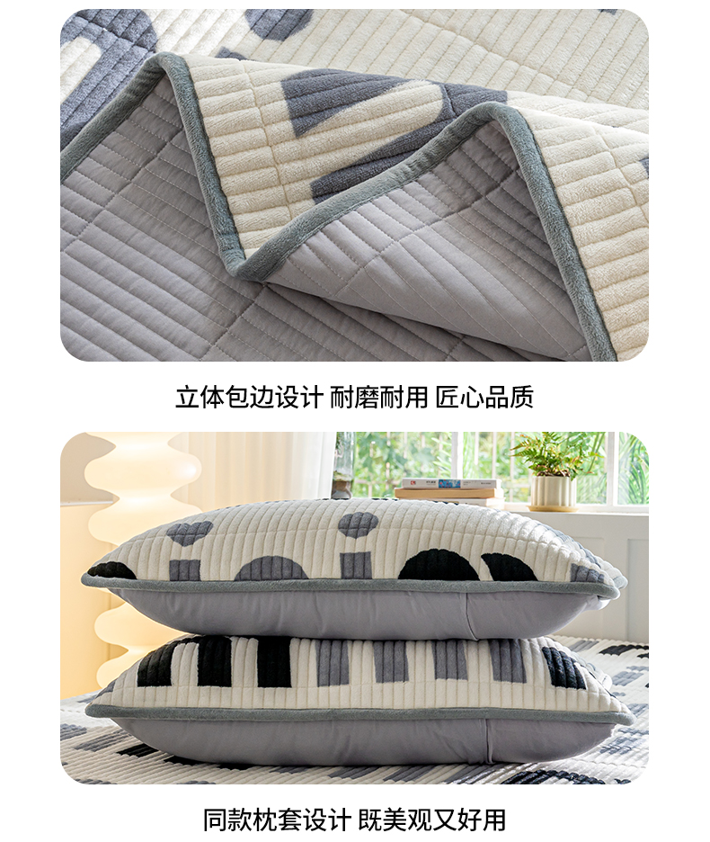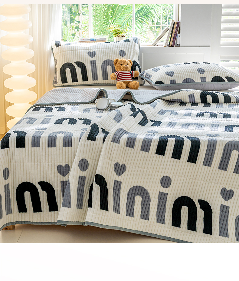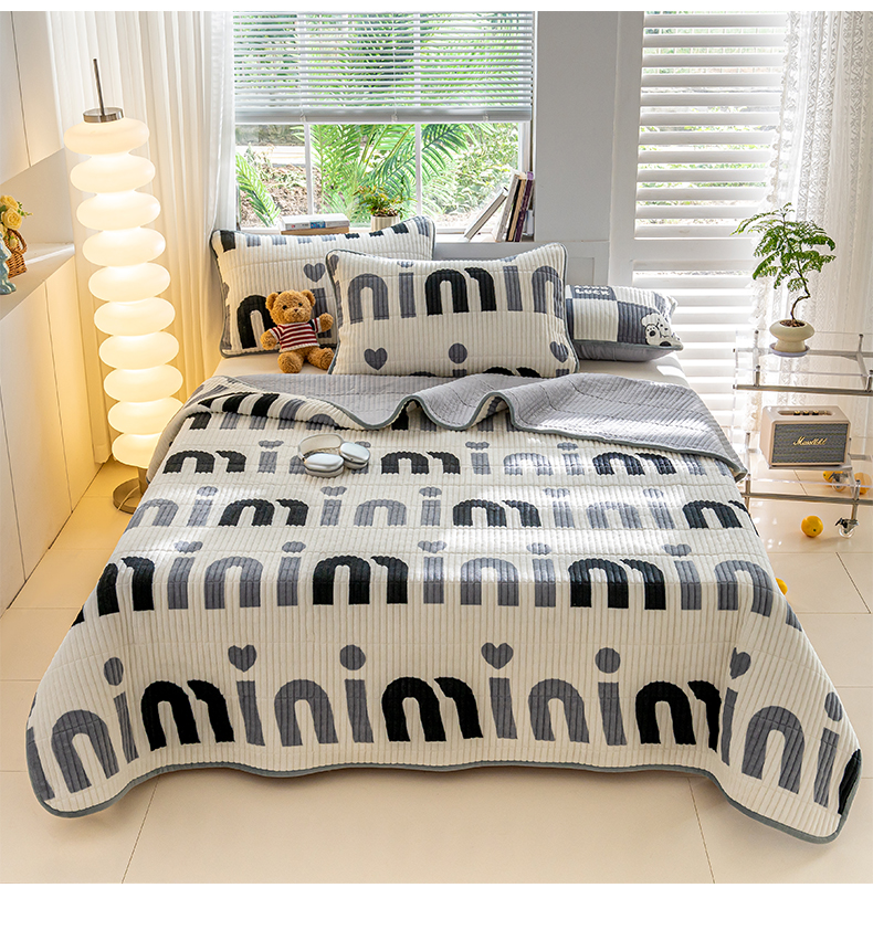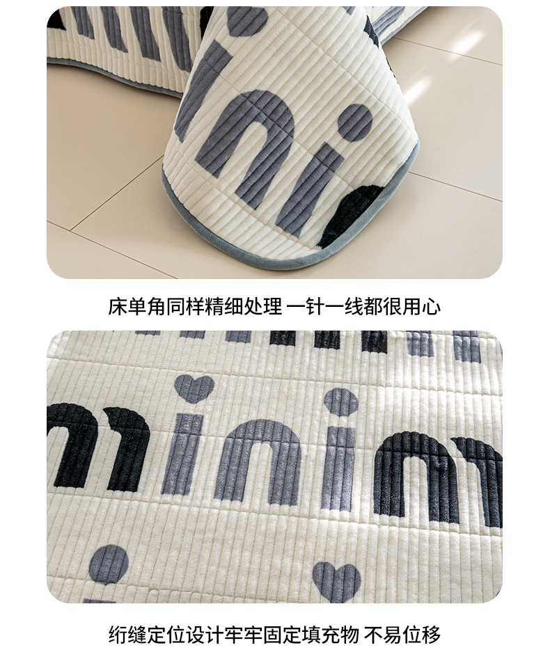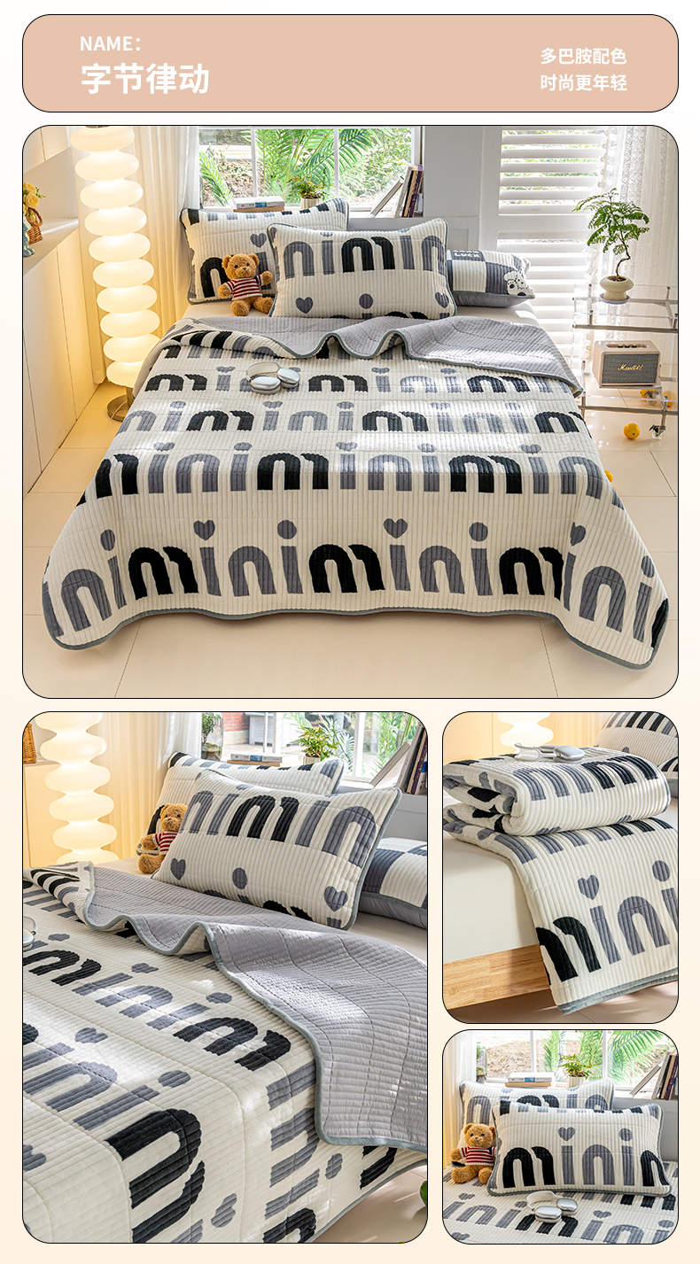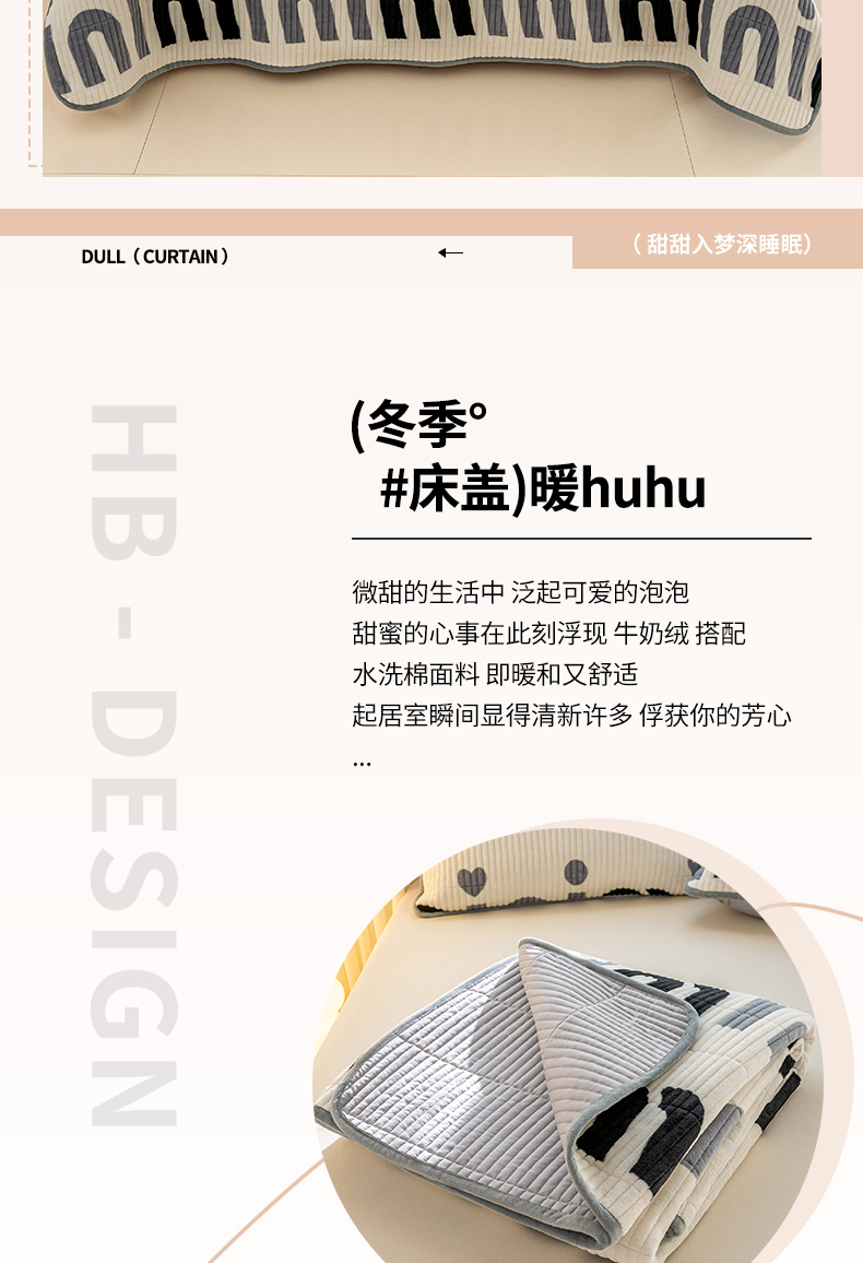 • 91家纺网 家纺一手货源 找家纺 X猫先生 2024新款牛奶绒床盖床垫小清新印花夹棉水洗棉炕盖双面两用 字节律动