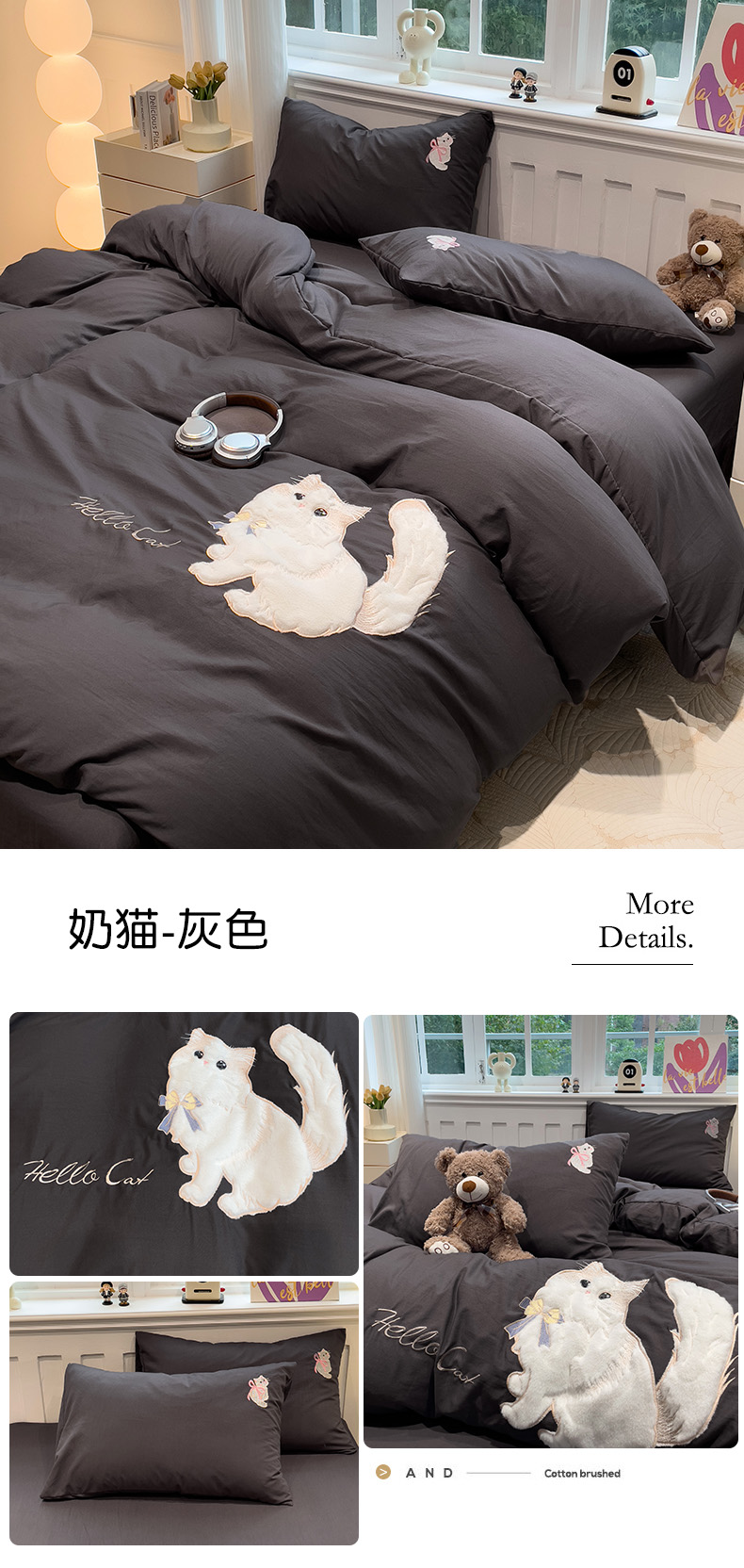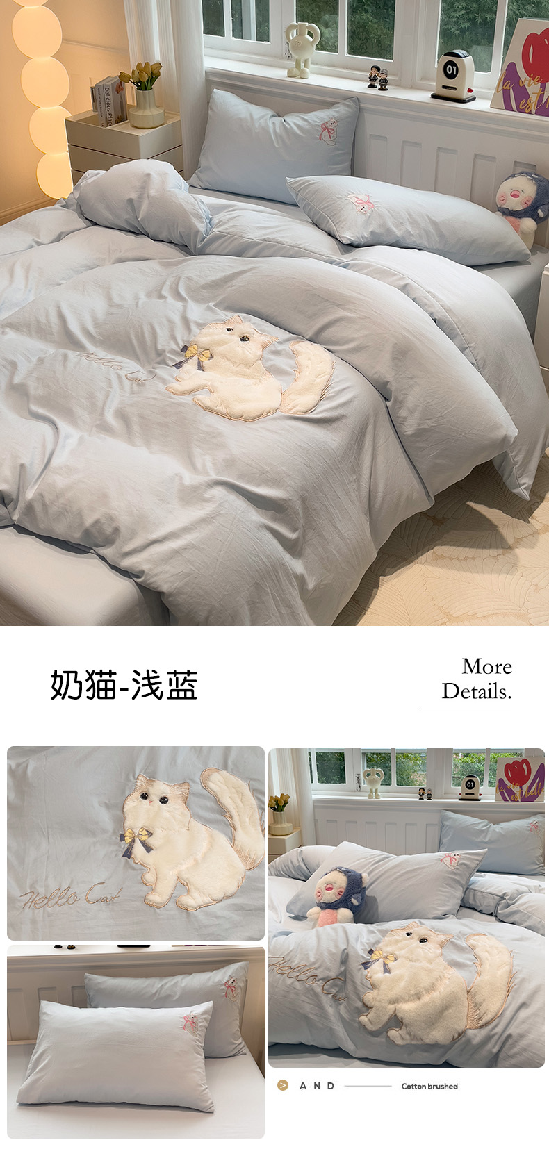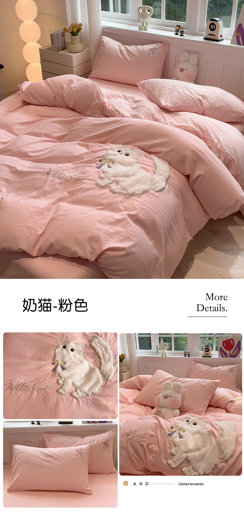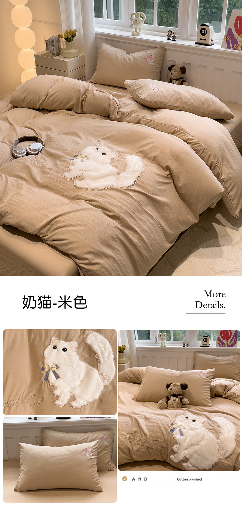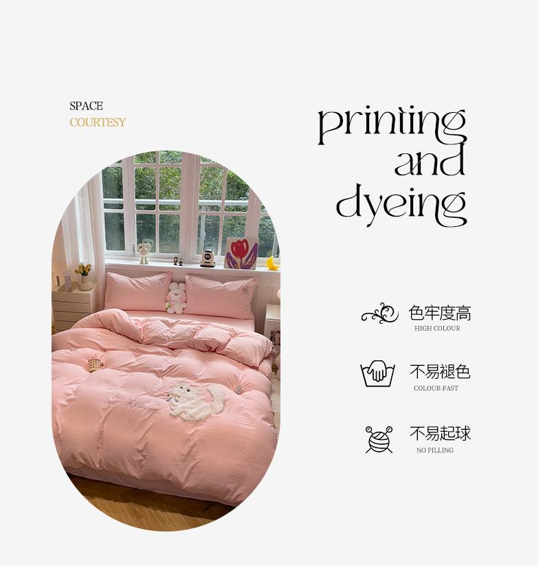 当前位置: 91家纺网 > 商品网购 > 床品套件 > 四件套 > 水洗棉四件套 > (总)优色良品家纺 2024新款水洗棉重工刺绣贴布绣四件套-奶猫款式二