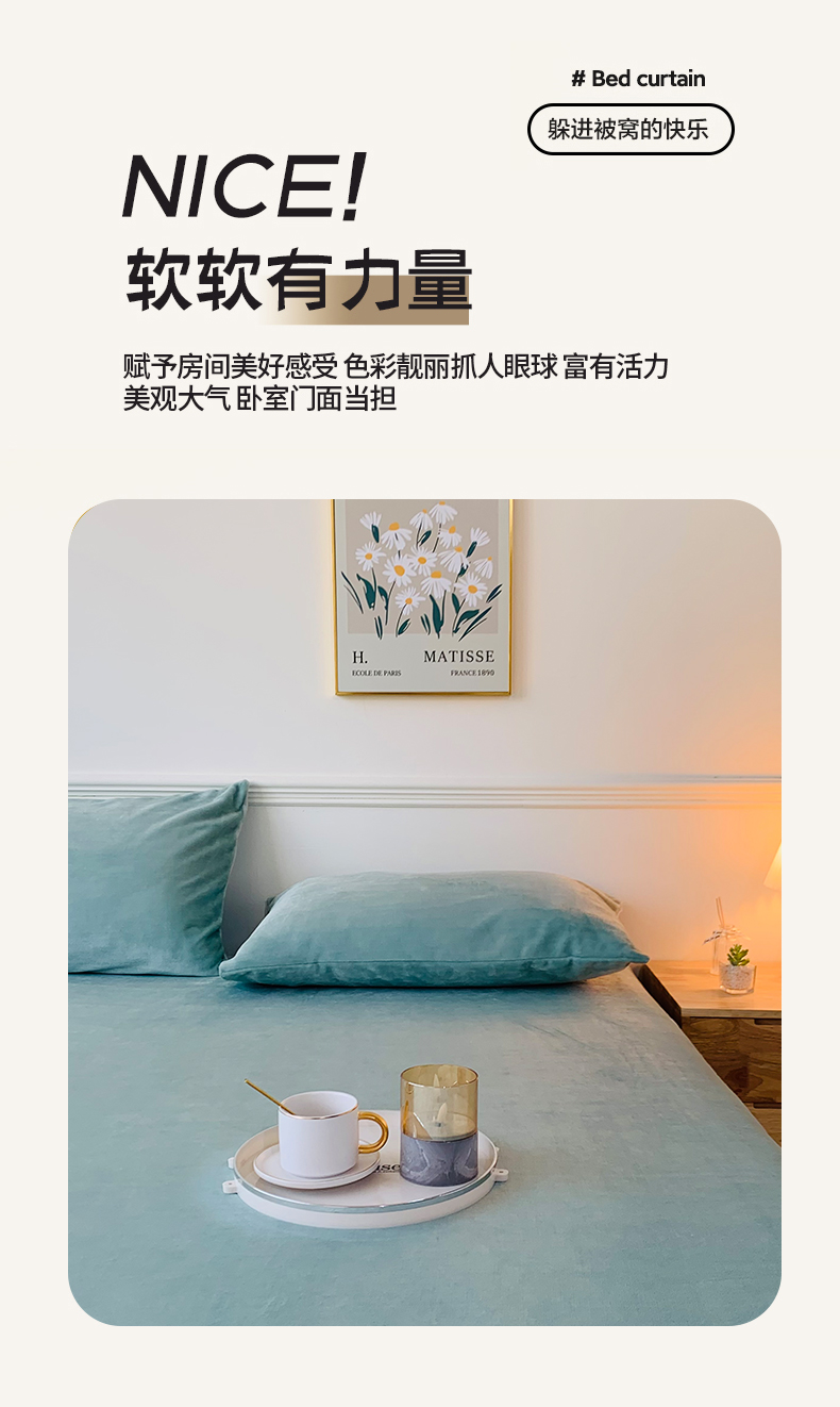 泽西家纺 2024新款高克重加厚牛奶绒单床笠 跨境 外贸 牛奶绒床笠-浅豆绿