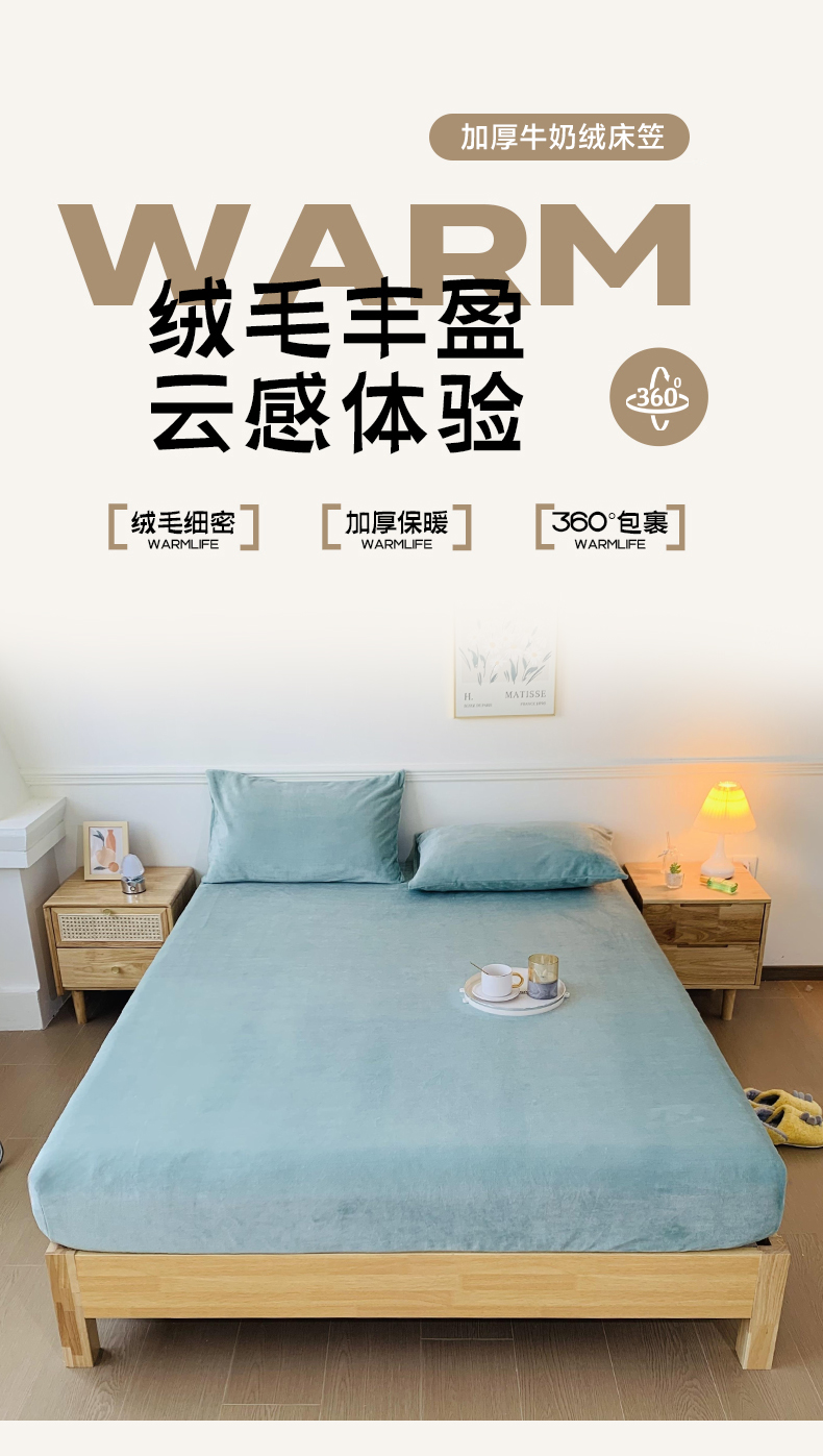 • 91家纺网 家纺一手货源 找家纺 泽西家纺 2024新款高克重加厚牛奶绒单床笠 跨境 外贸 牛奶绒床笠-浅豆绿