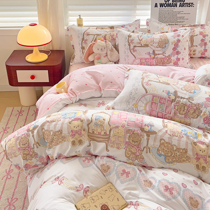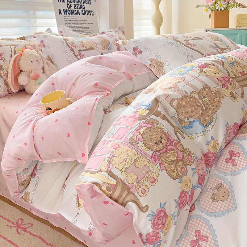 当前位置: 91家纺网 > 商品网购 > 床品套件 > 四件套 > 磨毛活性四件套 > 楠沐家纺 (套件)2025新款亲肤芦荟棉美棉磨毛印花四件套(第二批) 爱心萝莉熊