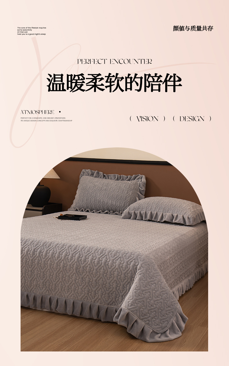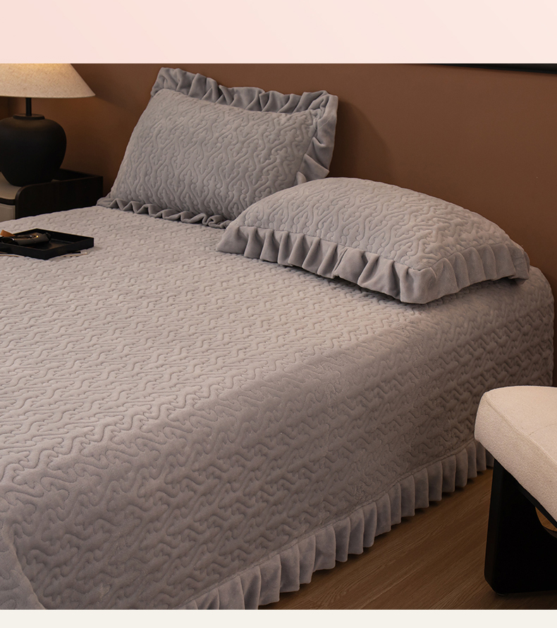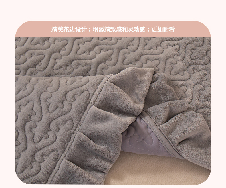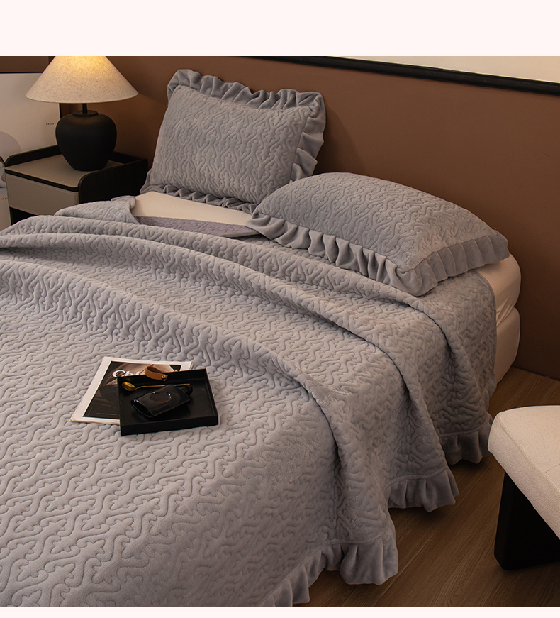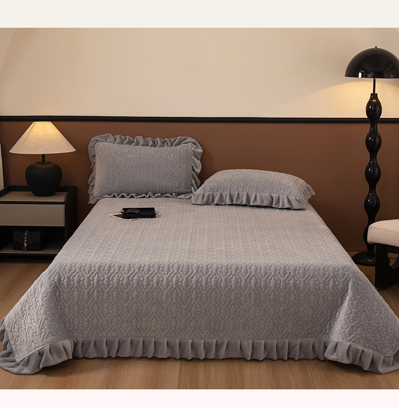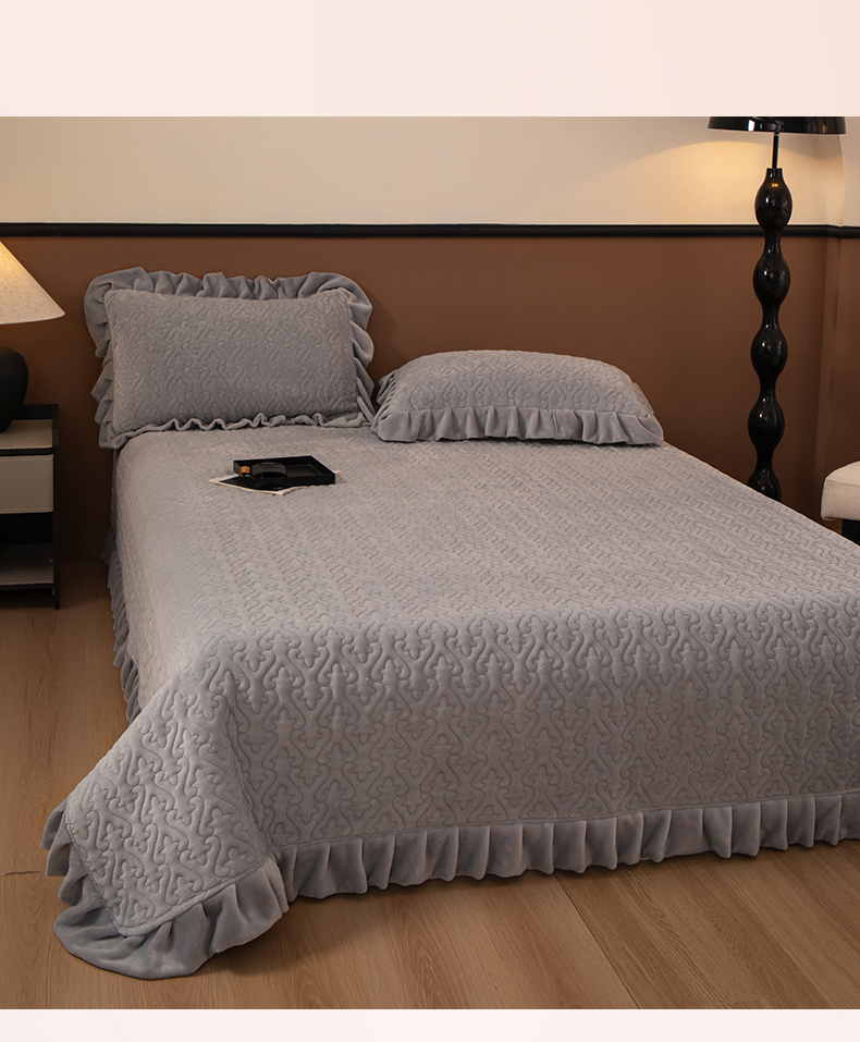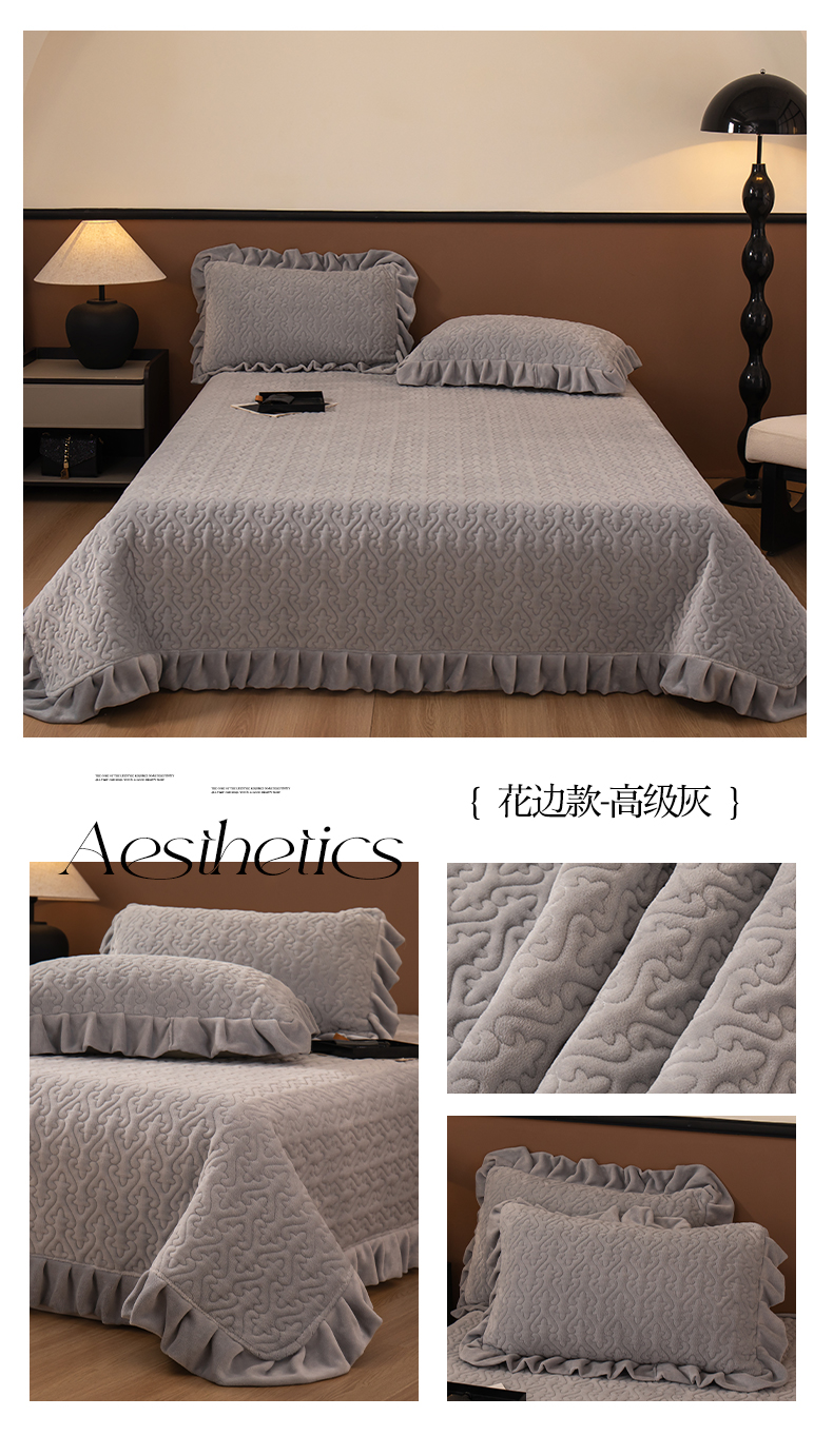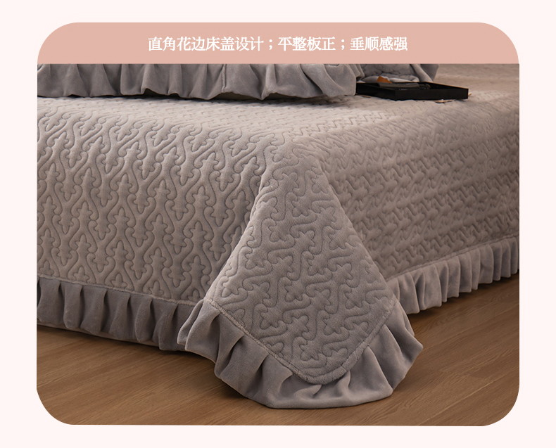 商品名称:2025新款230克牛奶绒加厚床盖 花边款-深灰