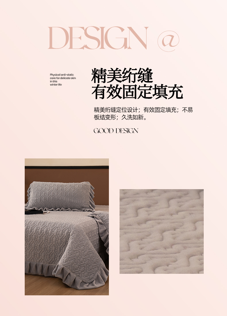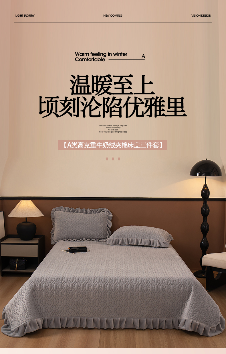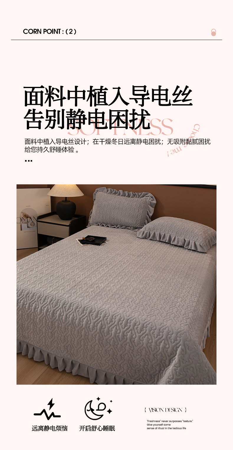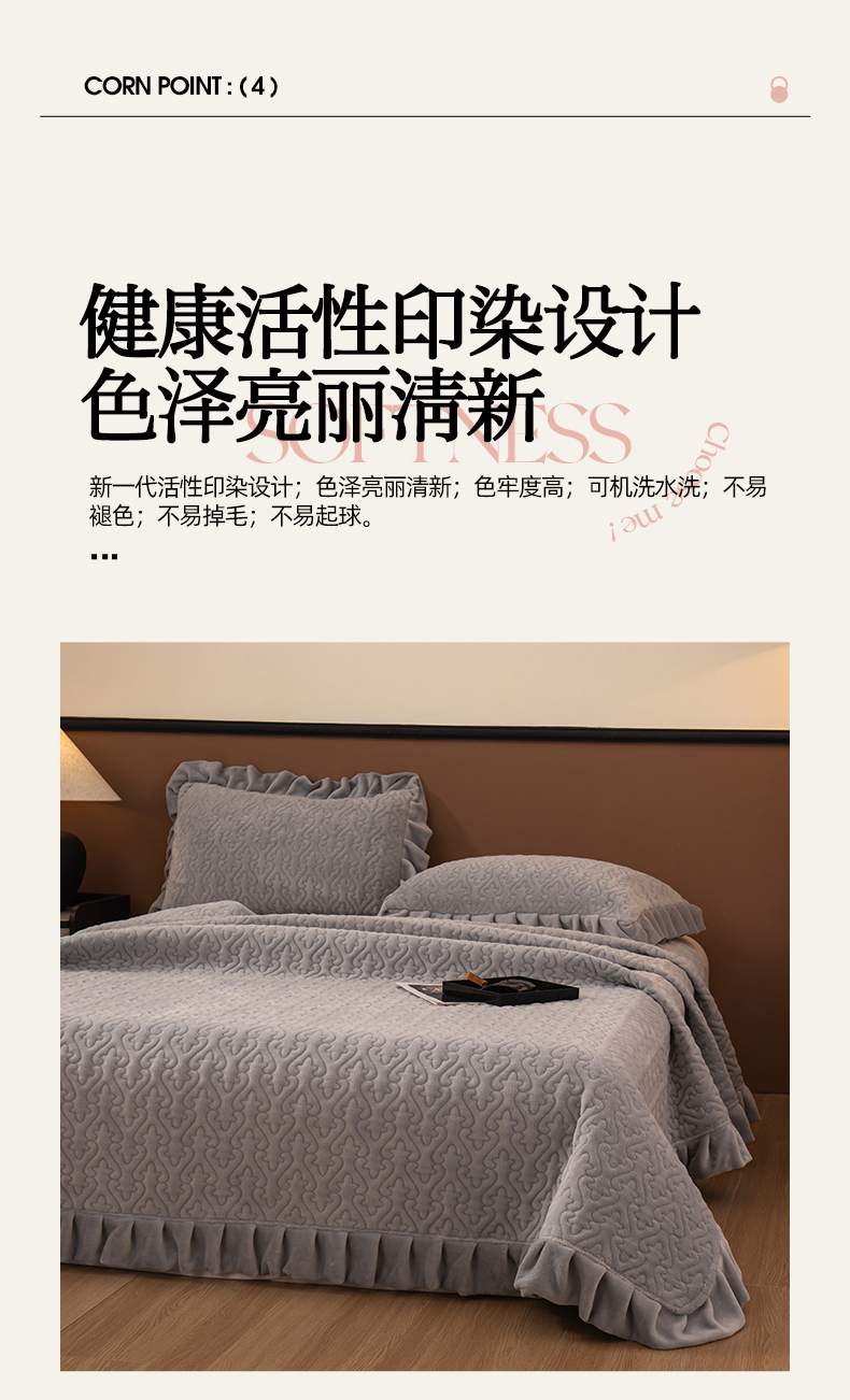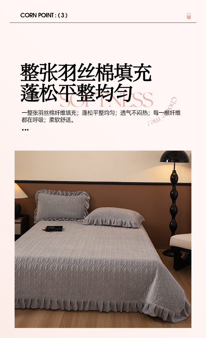 商品名称:2025新款230克牛奶绒加厚床盖 花边款-深灰