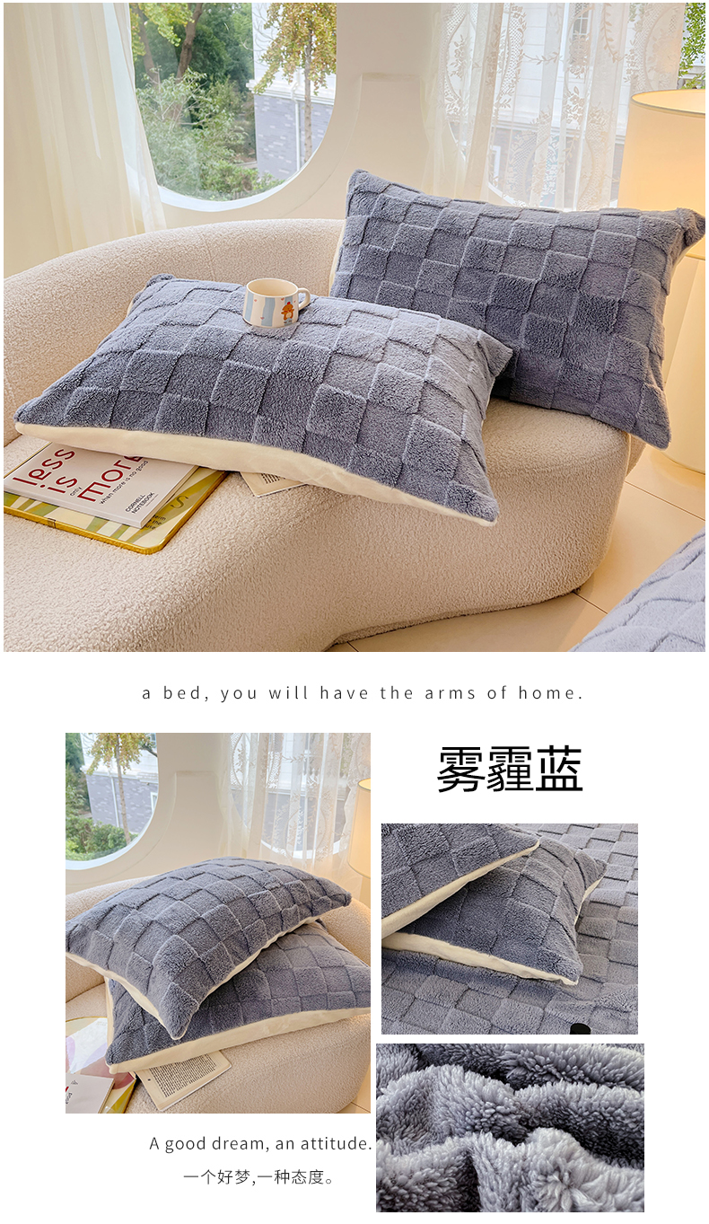 商品名称:锦润家纺 2024新款双面塔芙绒枕套一对 塔芙绒-灰兰