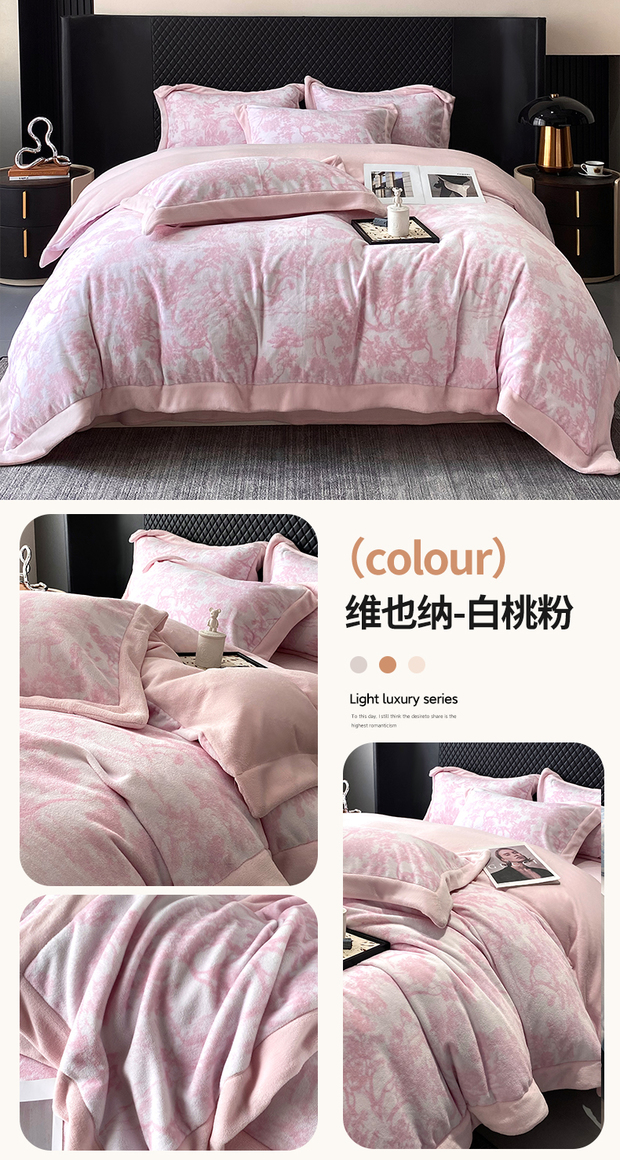 商品名称:优悦生活馆 2025新款牛奶绒印花四件套-维也纳 维也纳-白桃粉