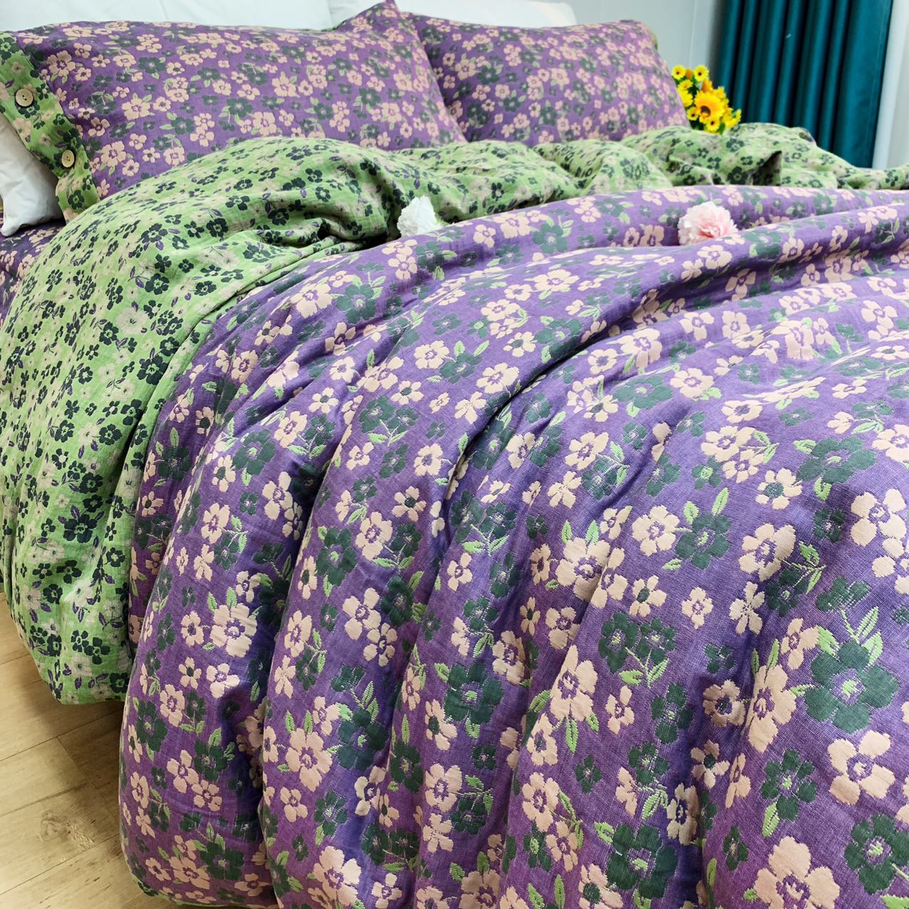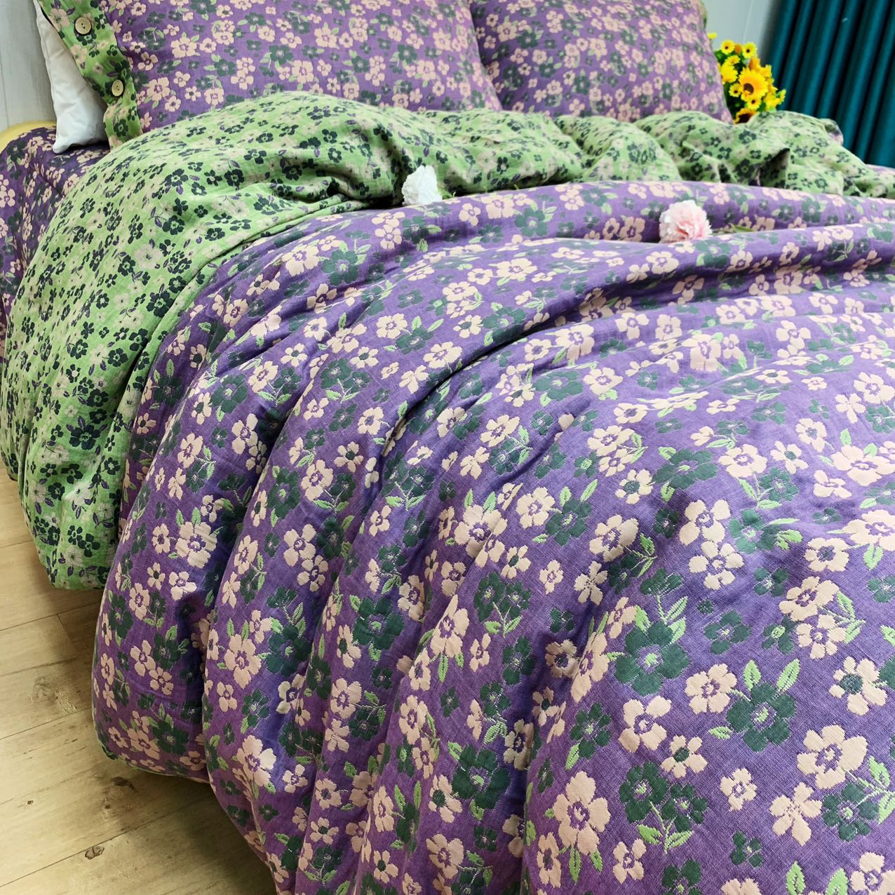 商品名称:鲁爱 2025新款三层纱床盖款四件套 清新之歌-紫